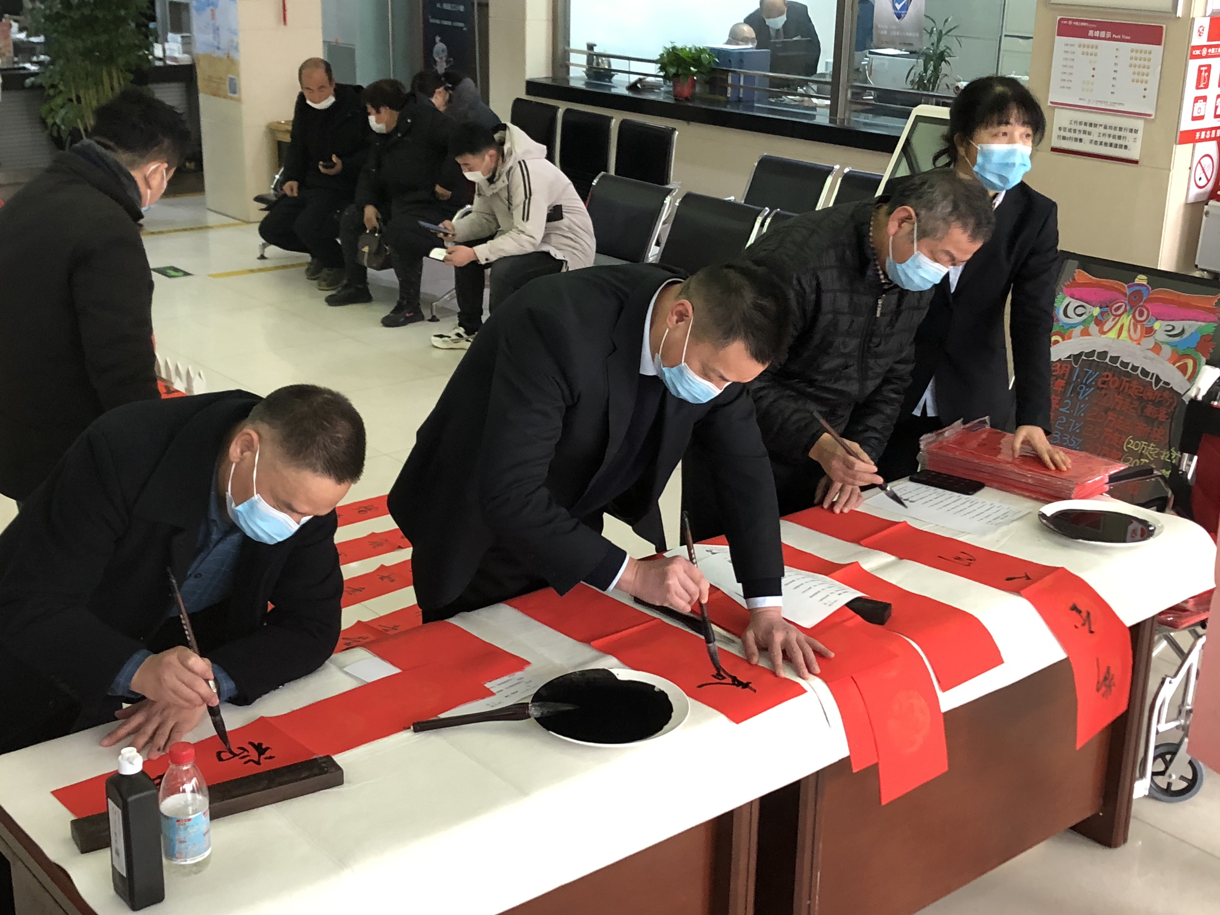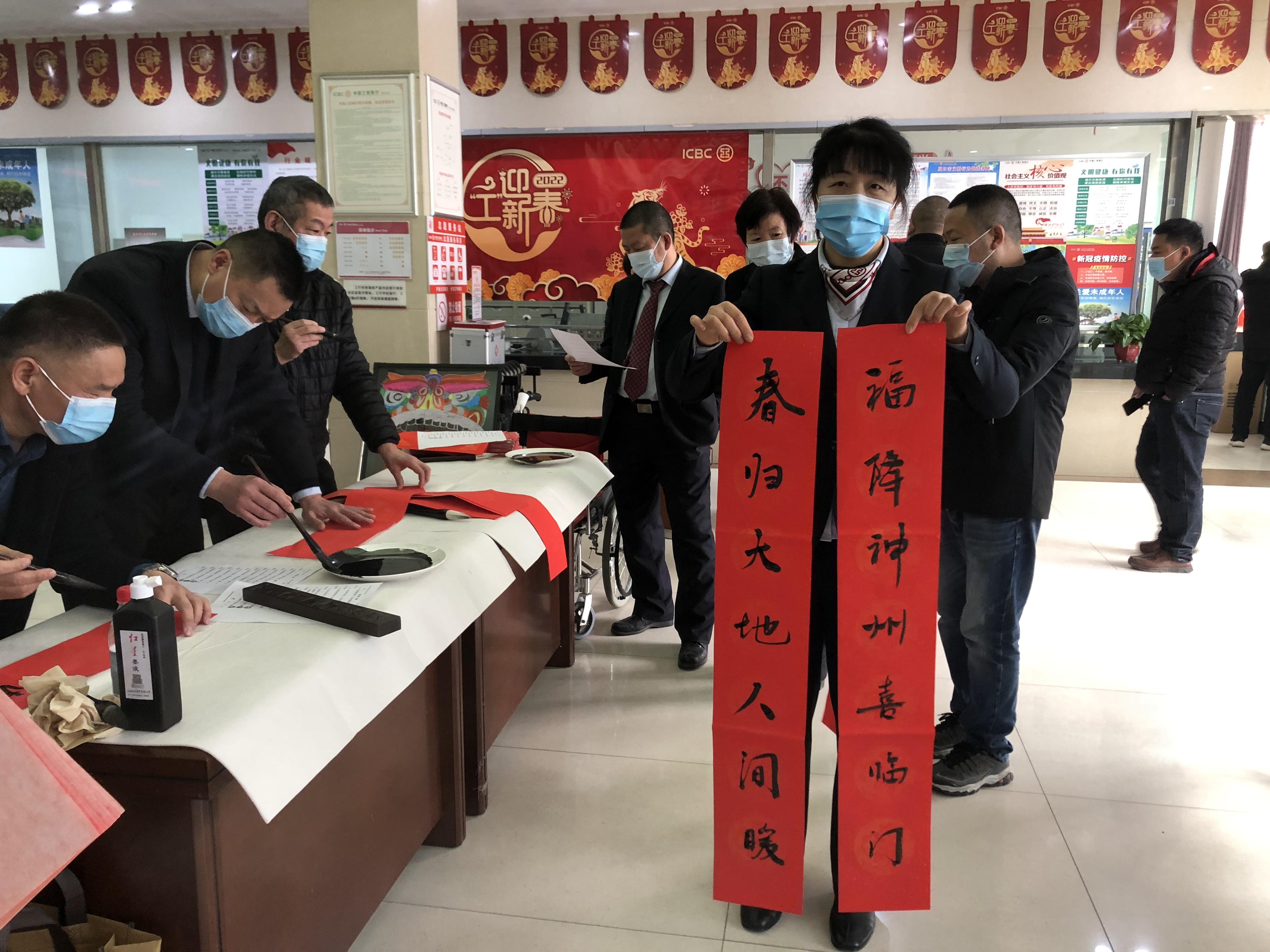 春節(jié)臨近,工行周口分行開(kāi)展“寫(xiě)春聯(lián)送福字”活動(dòng),精心組織本行書(shū)法協(xié)會(huì)會(huì)員分赴基層網(wǎng)點(diǎn),在營(yíng)業(yè)廳堂揮毫潑墨,為客戶(hù)寫(xiě)春聯(lián)、送福字。把一幅幅盛贊祖國(guó)昌盛、人民安居樂(lè)業(yè)、新春祝福送給客戶(hù)。此次活動(dòng),該行共計(jì)為客戶(hù)送出春聯(lián)1300余幅,受到廣大客戶(hù)的稱(chēng)贊。 李玉 攝①2