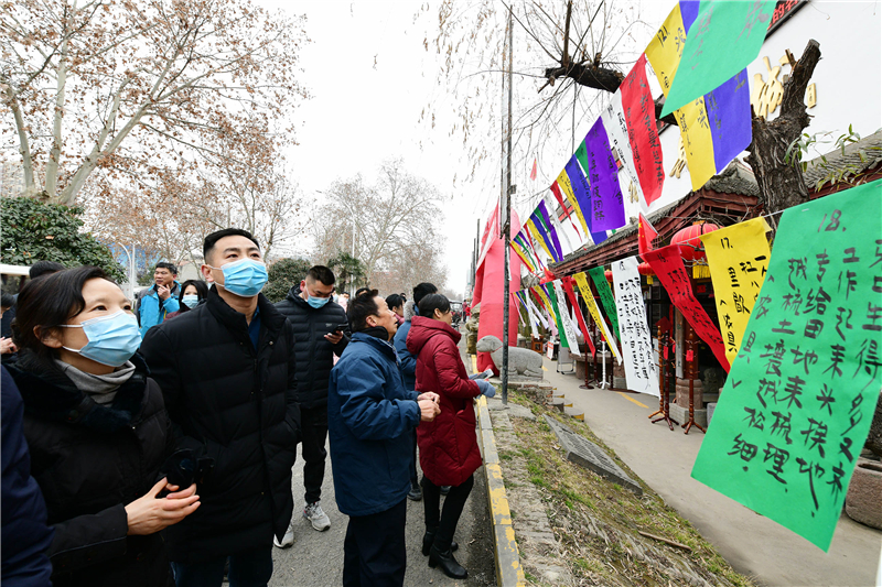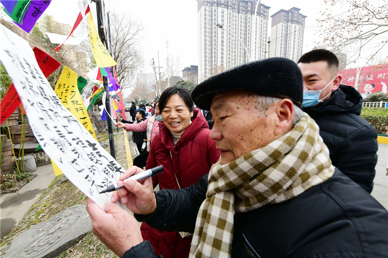 2月15日上午9時(shí),由周口市文化廣電和旅游局、周口市文物局主辦,市博物館、市文物保護(hù)中心、市民協(xié)、華威民俗文化博物苑承辦,市民協(xié)燈謎學(xué)專委會(huì)、川匯區(qū)民協(xié)、川匯區(qū)燈謎學(xué)會(huì)協(xié)辦的元宵節(jié)燈謎競(jìng)猜活動(dòng),主會(huì)場(chǎng)在市文化藝術(shù)中心廣場(chǎng),分會(huì)場(chǎng)在華威民俗文化博物苑,吸引謎語(yǔ)愛(ài)好者踴躍競(jìng)猜,甚為熱鬧。在華威民俗文化博物苑分會(huì)場(chǎng)的謎語(yǔ)現(xiàn)場(chǎng),舉辦方以傳統(tǒng)形式進(jìn)行,備了300條謎語(yǔ),用毛筆將謎語(yǔ)寫(xiě)在紅藍(lán)綠白紙張上,懸掛門前,讓市民競(jìng)猜,氣氛熱烈濃厚。舉辦方還特意準(zhǔn)備了跳繩、網(wǎng)球拍、乒乓球拍、飛鏢盤、跳棋等600份獎(jiǎng)品,獎(jiǎng)給猜中謎底的市民。①2