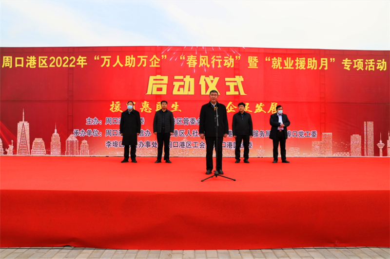 2月22日,周口港區(qū)舉辦2022年“萬人助萬企”“春風(fēng)行動”暨“就業(yè)援助月”啟動儀式,通過舉辦一系列活動,為企業(yè)和求職者牽線搭橋。港區(qū)黨委書記孫鵬宣布啟動儀式開幕,管委會主任胡軍華在儀式上致辭,港區(qū)領(lǐng)導(dǎo)杜廣賢、劉學(xué)慶、李素芹參加活動。
