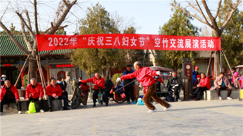3月8日,周口市空竹運(yùn)動(dòng)協(xié)會(huì)在周口關(guān)帝廟廣場(chǎng)舉行慶?!叭恕眹?guó)際婦女節(jié)空竹交流展演活動(dòng),20多名空竹愛好者相繼表演了空竹運(yùn)動(dòng)的各種技法,讓現(xiàn)場(chǎng)群眾大開眼界。