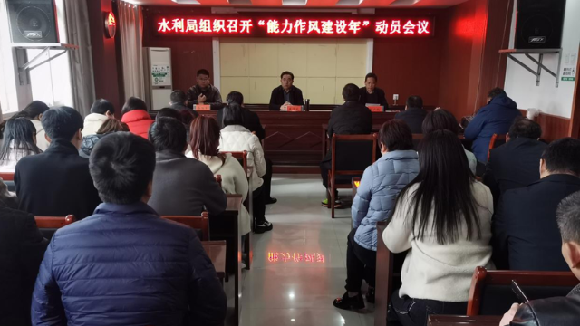 3月1日上午,商水縣水利局召開(kāi)“能力作風(fēng)建設(shè)年”動(dòng)員會(huì)議,全面落實(shí)省委、市委、縣委“能力作風(fēng)建設(shè)年”動(dòng)員會(huì)議精神,對(duì)開(kāi)展“能力作風(fēng)建設(shè)年”活動(dòng)進(jìn)行安排部署。
