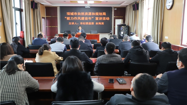 近日,項(xiàng)城市自然資源和規(guī)劃局開(kāi)展“能力作風(fēng)建設(shè)年”主題宣講活動(dòng),特邀請(qǐng)項(xiàng)城市紀(jì)委監(jiān)委宣傳部宣講師余海濱前來(lái)授課。