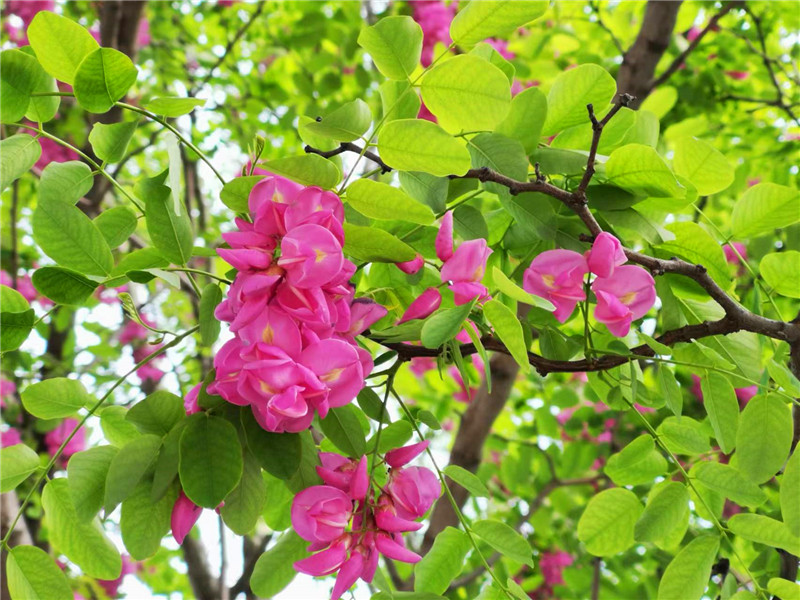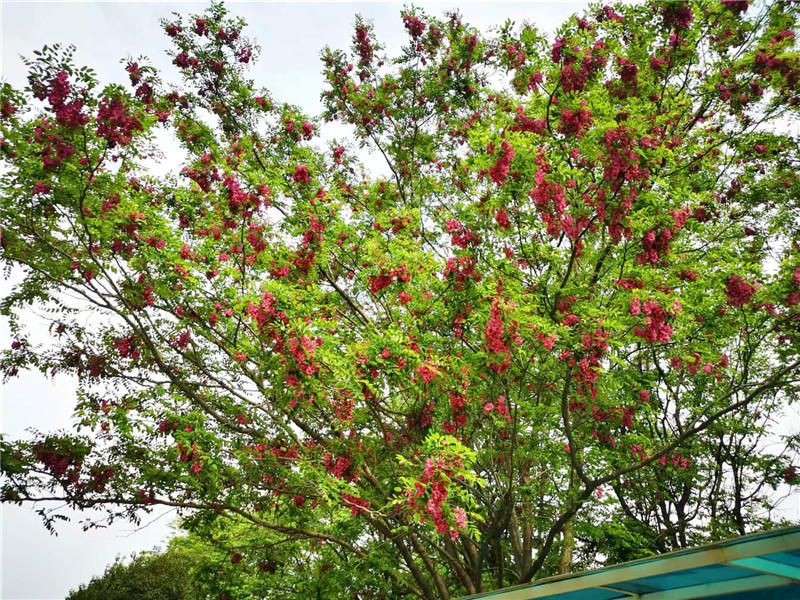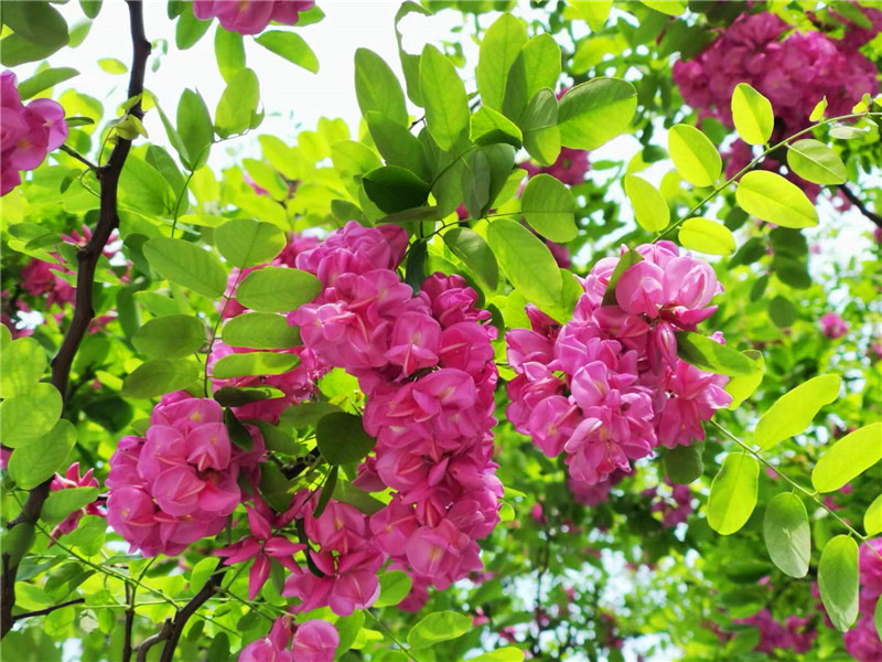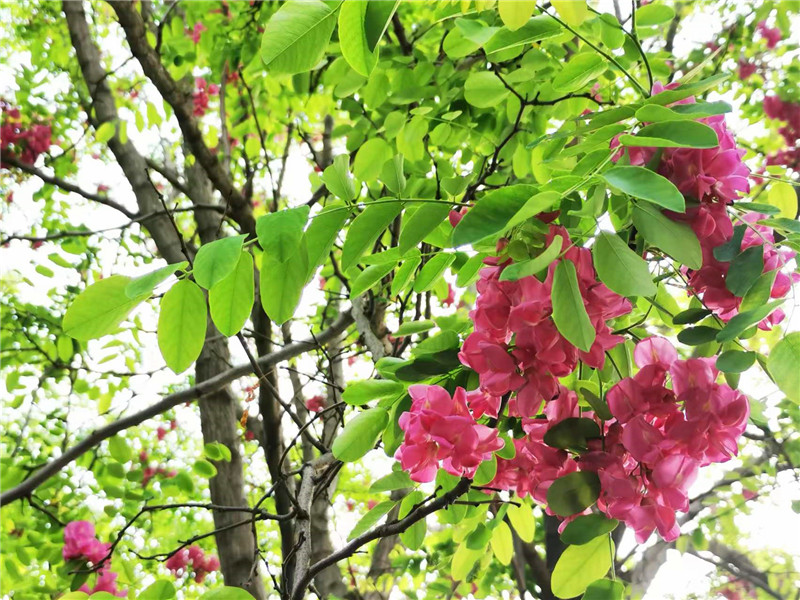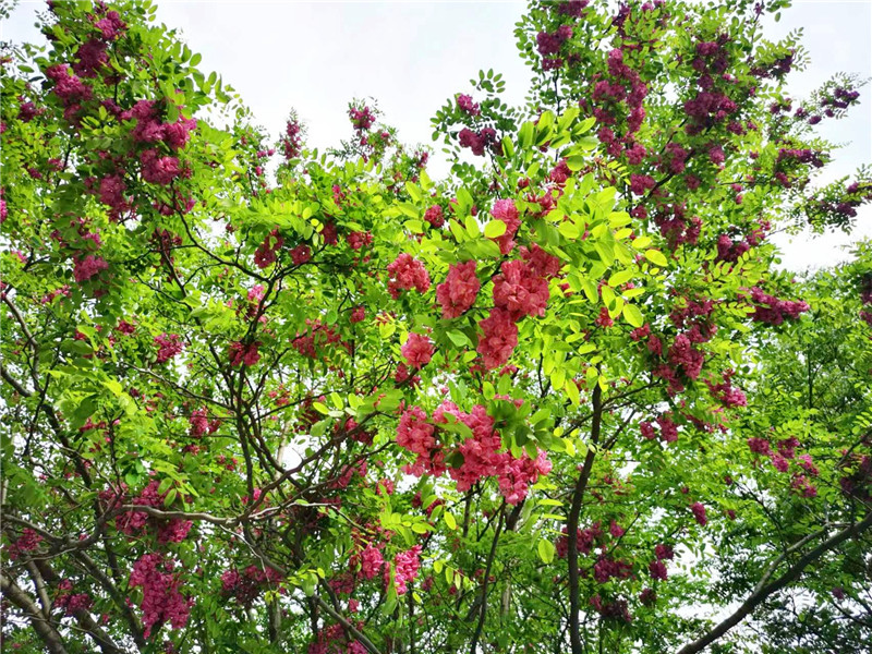 “槐林五月漾瓊花,郁郁芬芳醉萬家?!毖巯拢谥芸跒I河公園,紅色的槐花怒放,芳香四溢,惹人心醉。陽光下,一串串、一簇簇、一樹樹槐花隨風搖曳,美不勝收。周口日報·周道客戶端記者 普淑娟 攝