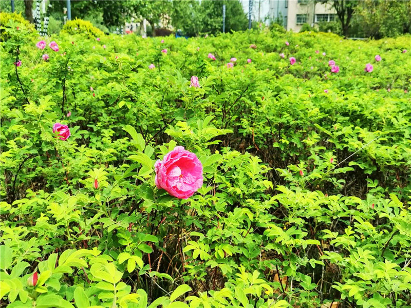近日的鐵路主題公園正值玫瑰花開,紅紅粉粉的花朵綴滿枝頭,在風中舞動,成了一幅醉人的秀美畫卷,將公園裝點得璀璨奪目。