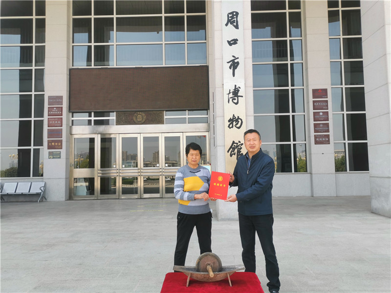 萬莊村民葉桂蓮向市博物館捐贈家傳藥碾子
