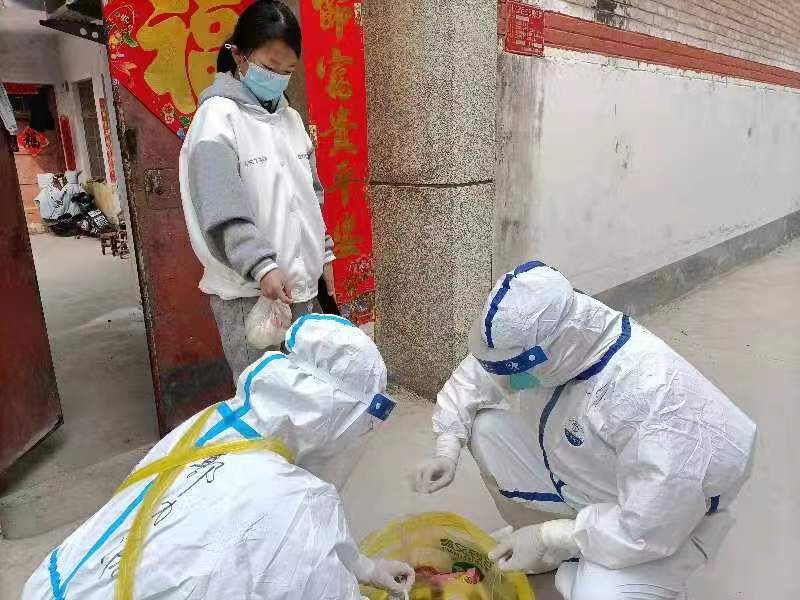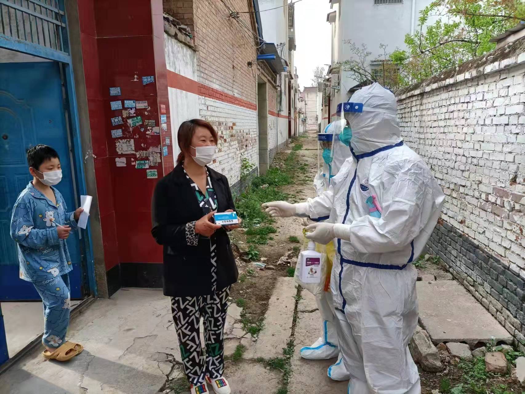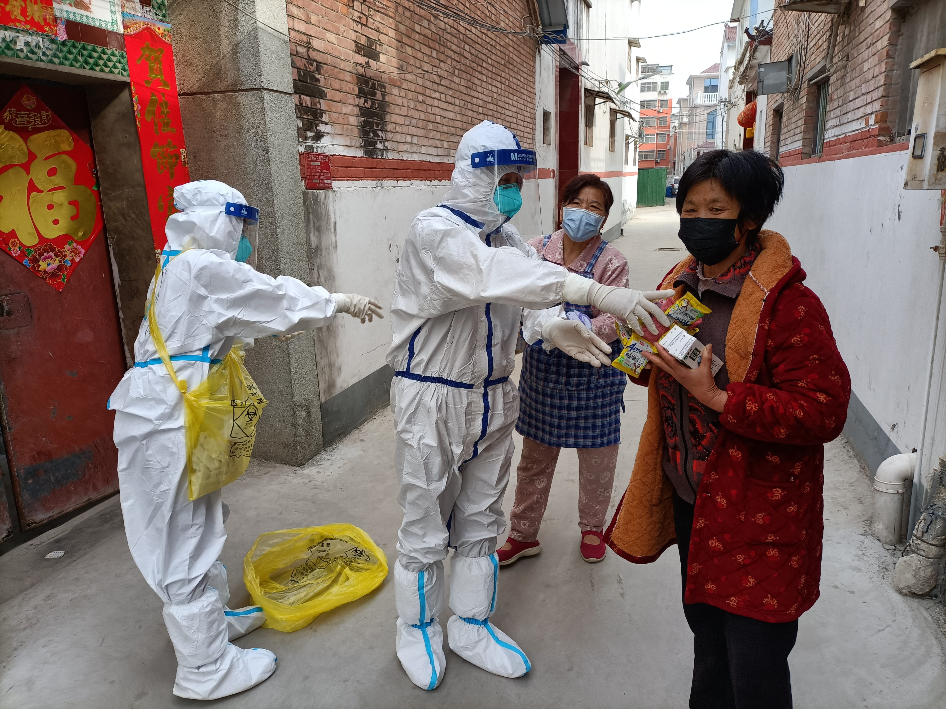 到達(dá)太康后,王群禮被分到了城關(guān)回族鎮(zhèn)封控區(qū)進(jìn)行入戶核酸采集,當(dāng)時的他也很緊張,認(rèn)真地穿防護(hù)服,熟記采集核酸的每一個動作要領(lǐng),然后投身抗疫最前線。在入戶采樣的時候,王群禮發(fā)現(xiàn)有一個小女孩獨(dú)自在家,她每次聽到敲門聲都是先開一點(diǎn)縫,悄悄觀察外面,當(dāng)看到是防疫人員時,才慢慢打開門。“我可以看出她的恐懼和無助,不知道她晚上怕不怕,會不會做飯,問她怎么吃飯,她也不說話,我心里很不是滋味?!睆哪翘扉_始,王群禮每次入戶采核酸的時候,就幫她帶點(diǎn)吃的,王群禮會把他的早餐留給她,還把自己的水果、零食也都送給她。
