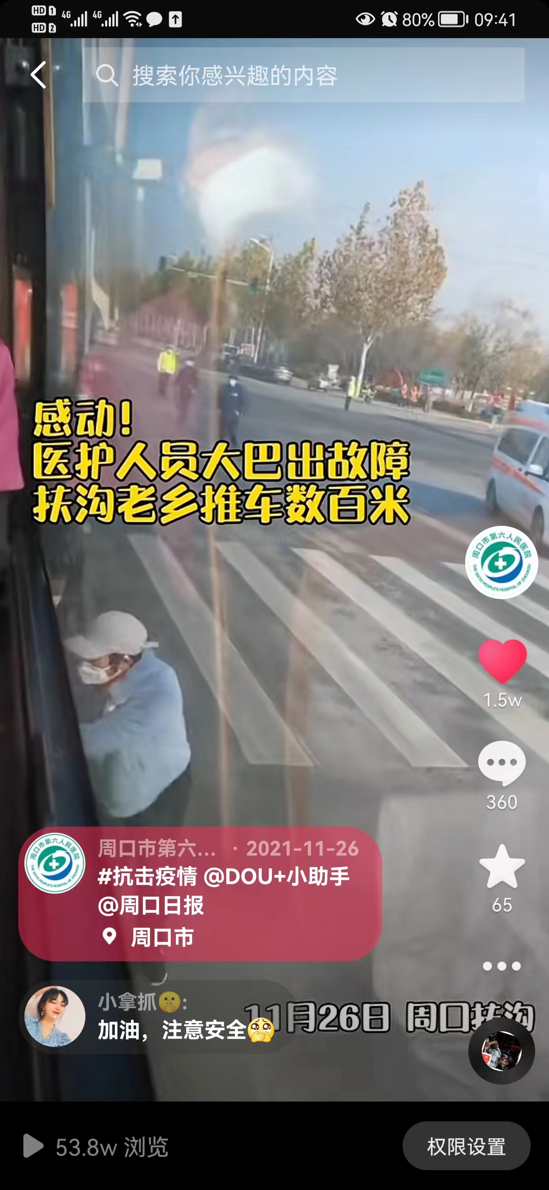 回去的時(shí)候,楊妮她們坐的大巴車(chē)出了故障,沒(méi)辦法正常啟動(dòng),扶溝鄉(xiāng)親們,親自推車(chē)數(shù)百米,幫助她們的大巴啟動(dòng)。她坐在車(chē)上非常感動(dòng),用手機(jī)記下了這一幕,在后來(lái)醫(yī)院的宣傳中,這條段視頻被點(diǎn)擊了50多萬(wàn)次,收獲了1萬(wàn)多人的點(diǎn)贊。