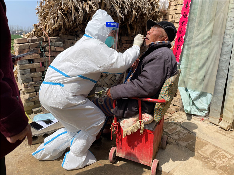 遇到小朋友、癱瘓或下床困難居民,喬晶常常或半蹲或扎馬步或彎著腰采樣。每當(dāng)困了累了,她都在心里給自己打氣加油。
