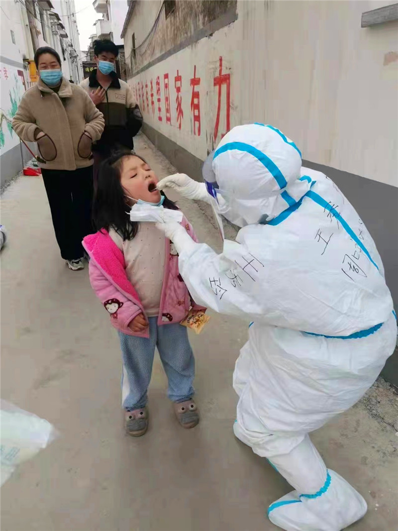 在太康戰(zhàn)“疫”中,第二醫(yī)療隊(duì)執(zhí)行的是封控區(qū)核酸采樣任務(wù)、應(yīng)急核酸采樣任務(wù),并兼做初篩陽性患者復(fù)核采樣工作。在這披星戴月的14天里,王秀玲每天直面病毒,不分晝夜,轉(zhuǎn)戰(zhàn)于20多個(gè)封控區(qū),穿梭在人人避之不及的地方。她和隊(duì)員們每天手?jǐn)y采樣包、身穿防護(hù)服,哪里有需要就到哪里去,以沖刺的姿勢拼出了核酸采樣的“加速度”。14天共入戶核酸采集樣本8萬余份,結(jié)合在太康工作經(jīng)驗(yàn),制定了《周口市中心醫(yī)院入戶核酸采集步驟和流程》,受到了上級(jí)領(lǐng)導(dǎo)的充分肯定,并被全市各地疫情防控指揮部推廣實(shí)施,為有效阻擊疫情蔓延貢獻(xiàn)了周口市中心醫(yī)院的智慧。③10