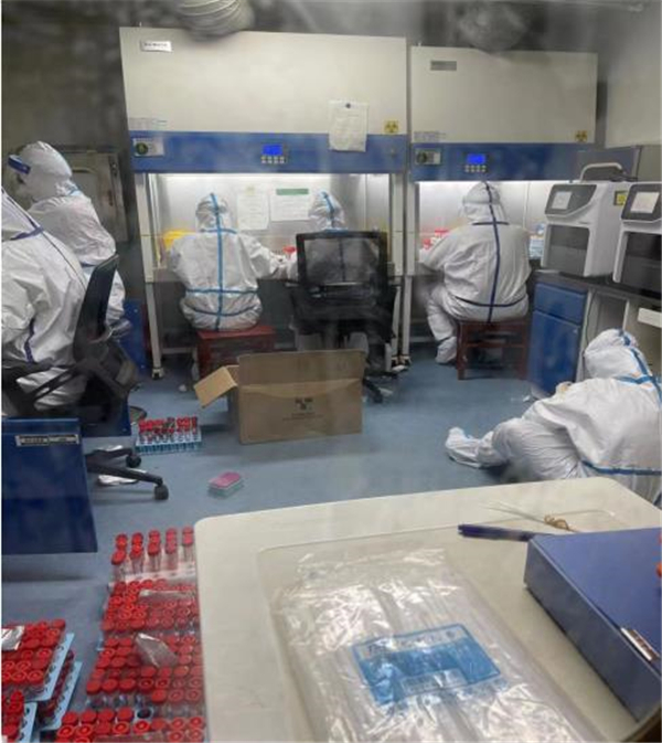 如果說有一座城叫眾志成城,那必定有一種力量叫檢驗(yàn)擔(dān)當(dāng)。在幾十平方米的實(shí)驗(yàn)室內(nèi),環(huán)境消毒、物資準(zhǔn)備、接收標(biāo)本、編號(hào)錄入、核酸提取、環(huán)境消殺、基因擴(kuò)增、結(jié)果研判、高壓消毒、信息上報(bào)、表格填寫、室內(nèi)質(zhì)控、室間質(zhì)評(píng)……每一個(gè)環(huán)節(jié)都需要嚴(yán)格規(guī)范操作,不放過任何一個(gè)細(xì)節(jié)、不能有一絲毫紕漏。在核酸檢測(cè)過程中,王健嚴(yán)格遵守生物安全制度,標(biāo)準(zhǔn)穿戴三級(jí)防護(hù)裝備,帽子、N95口罩、防護(hù)服、護(hù)目鏡、乳膠手套、隔離衣……一個(gè)也不能少。為以最快速度出具檢測(cè)結(jié)果,確保實(shí)驗(yàn)室安全,王健在低于標(biāo)準(zhǔn)大氣壓的負(fù)壓狀態(tài)下進(jìn)行工作。三級(jí)防護(hù)和大量檢測(cè)工作時(shí)常會(huì)使他出現(xiàn)汗流浹背、呼吸不暢、頭痛等缺氧癥狀,對(duì)體力是一個(gè)極大挑戰(zhàn)。但他總能克服這些困難,不辜負(fù)黨和人民的期望,在抗擊新冠肺炎疫情的戰(zhàn)場(chǎng)上勇?lián)姑?、沖鋒在前,為人民群眾筑起生命健康的第一道防線!