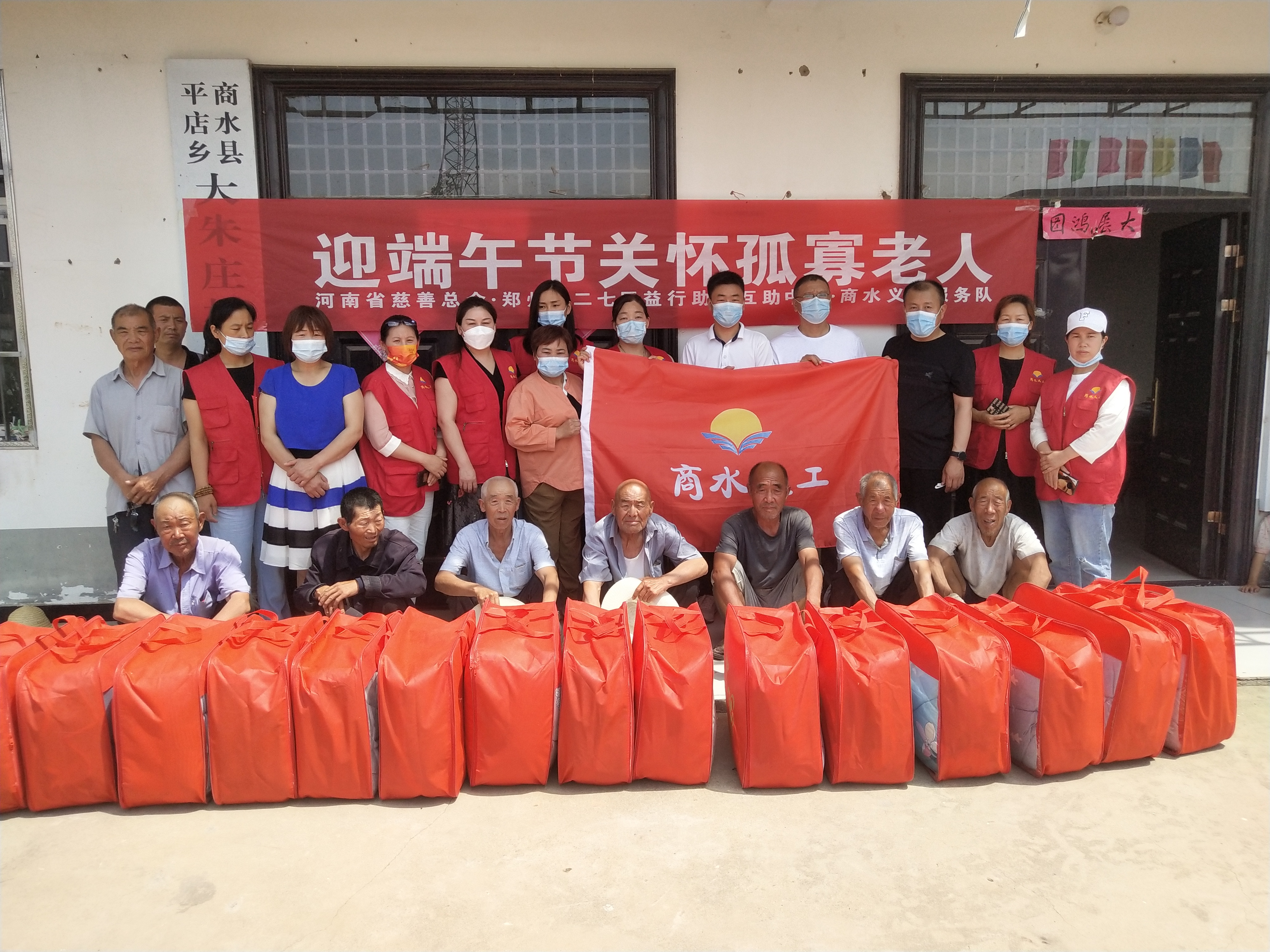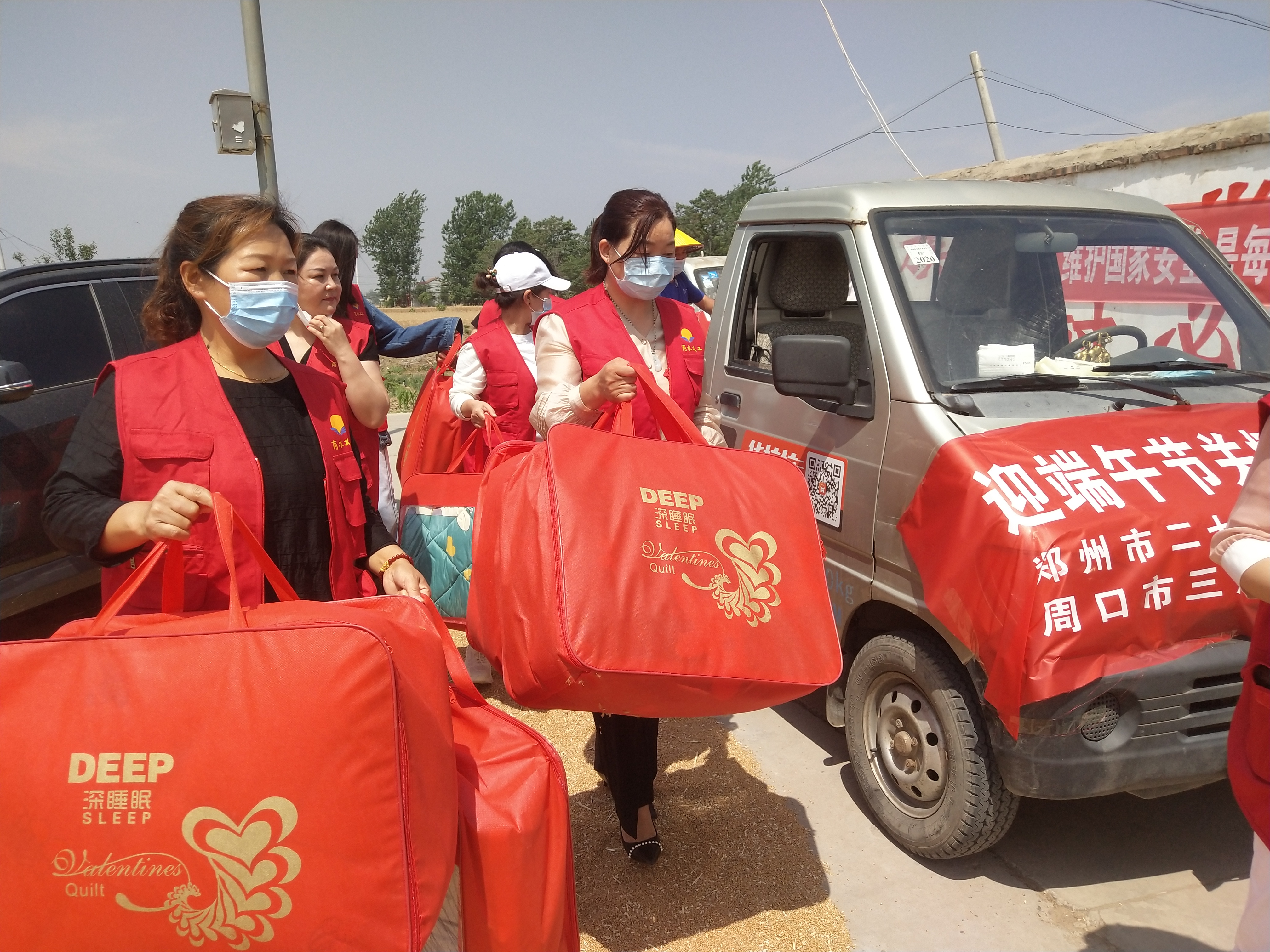 一輛滿載“高級(jí)夏涼被”的小型貨車,從周口出發(fā),經(jīng)商水城區(qū),徑直駛向該村村室。9名身穿紅馬甲的愛(ài)心志愿者麻利地卸下物品,為在這里等候的15位孤寡困難老人送上了一份暖心的端午節(jié)禮物。