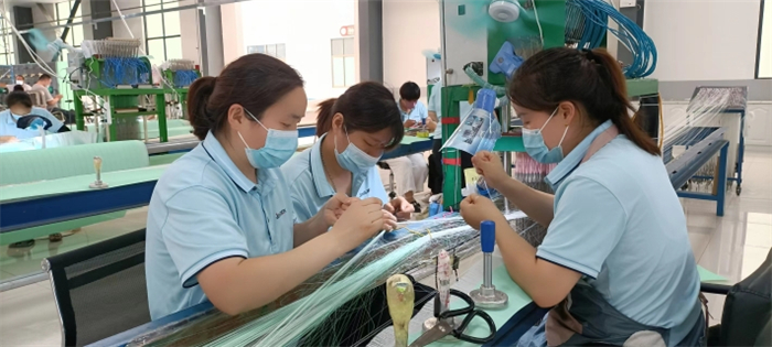 圍繞百億級裝備制造業(yè)產(chǎn)業(yè)集群發(fā)展,提升裝備制造業(yè)科技研發(fā)創(chuàng)新能力。以加快晶鑫科技上市為引領(lǐng),推動傳統(tǒng)企業(yè)整體轉(zhuǎn)型升級。晶鑫科技產(chǎn)業(yè)園內(nèi)綠意盎然,高大寬敞的廠房內(nèi)工人們在各自崗位上有條不紊地忙碌著。拉絲車間,一臺大型編織機(jī)械靜靜地運(yùn)轉(zhuǎn)。機(jī)械的一頭,只有一名技術(shù)人員在操控臺上注視著屏幕。工廠負(fù)責(zé)人說,這是剛安裝調(diào)試不久的一臺進(jìn)口機(jī)器,自動化程度和生產(chǎn)效率特別高,全國也沒有幾臺。編織車間,來自卞路口鄉(xiāng)董營行政村的馬杰正在熟練地操作著一臺編織機(jī)。晶鑫科技辦公室工作人員李文玲說,那臺機(jī)器也是進(jìn)口設(shè)備,技術(shù)含量很高,只有業(yè)務(wù)精湛的工人才能操作。馬杰笑著說,由于她操作的機(jī)器先進(jìn)、技術(shù)要求高,工資也比一般人員要高出許多。來自北城街道辦事處的編制工周福榮,按計件每月也能拿到6000元左右的工資。晶鑫科技負(fù)責(zé)人說,由于疫情防控原因,部分外銷產(chǎn)品出口受到影響,但他們的產(chǎn)品在市場上仍是供不應(yīng)求。