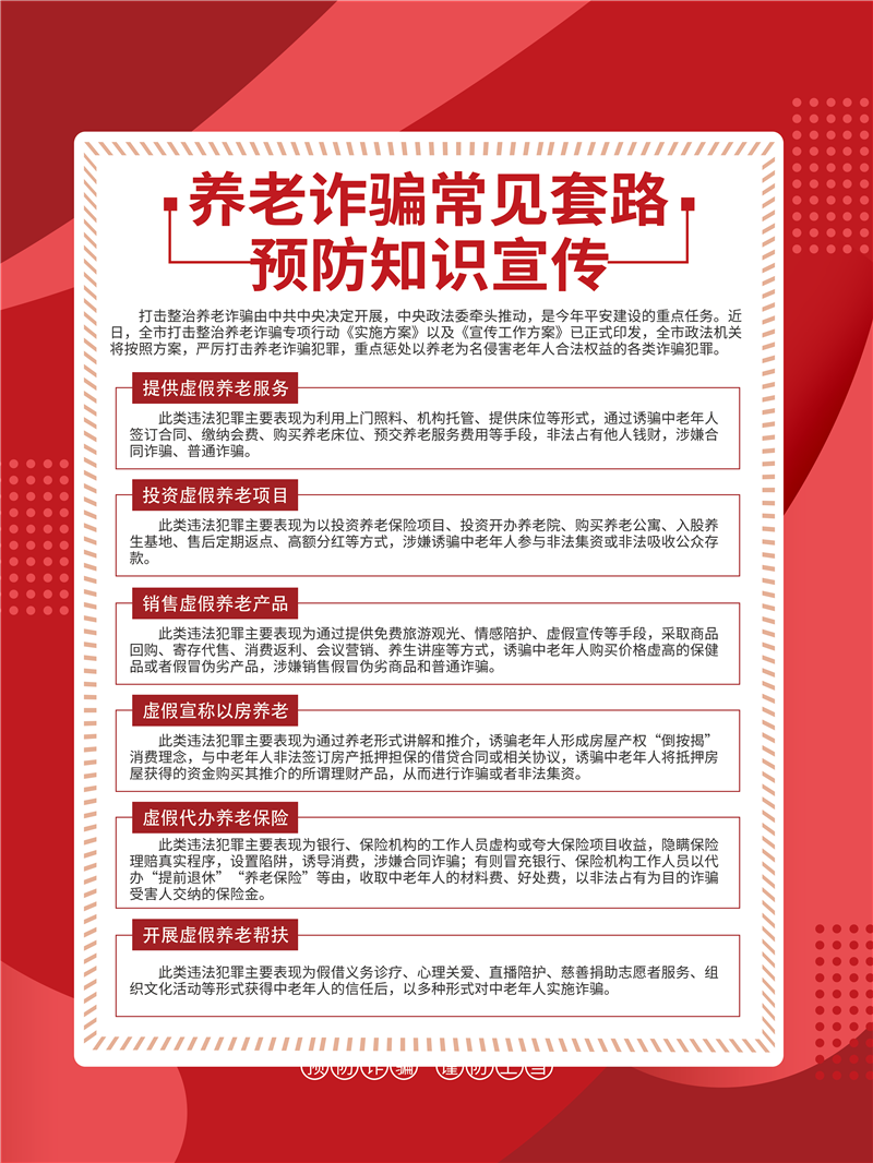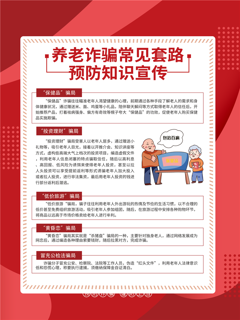 養(yǎng)老詐騙常見(jiàn)套路預(yù)防知識(shí)宣傳
