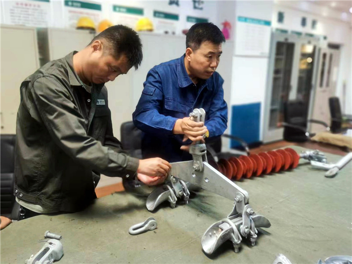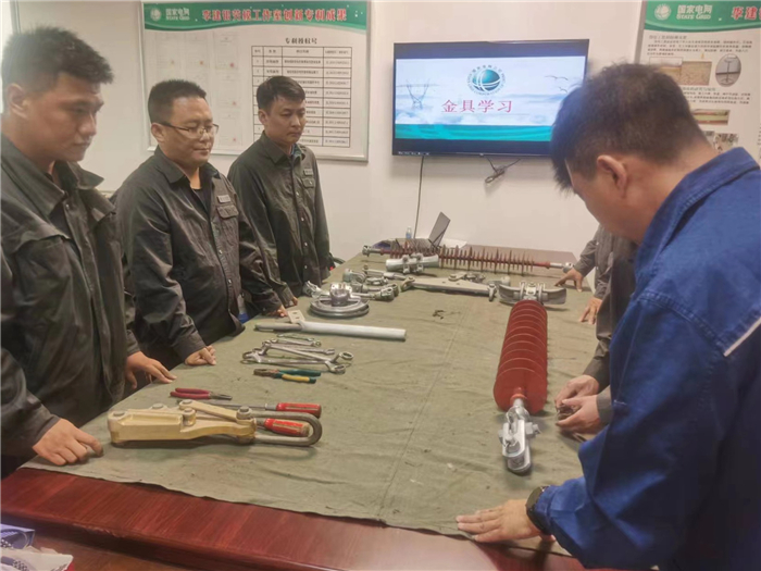 為把學習落到實處,提高班組成員主動學習的積極性,在當日的學習中,經驗豐富的老師傅還手把手地帶領青年員工對金具進行現(xiàn)場組裝。他們積極討論,相互切磋,取長補短。
