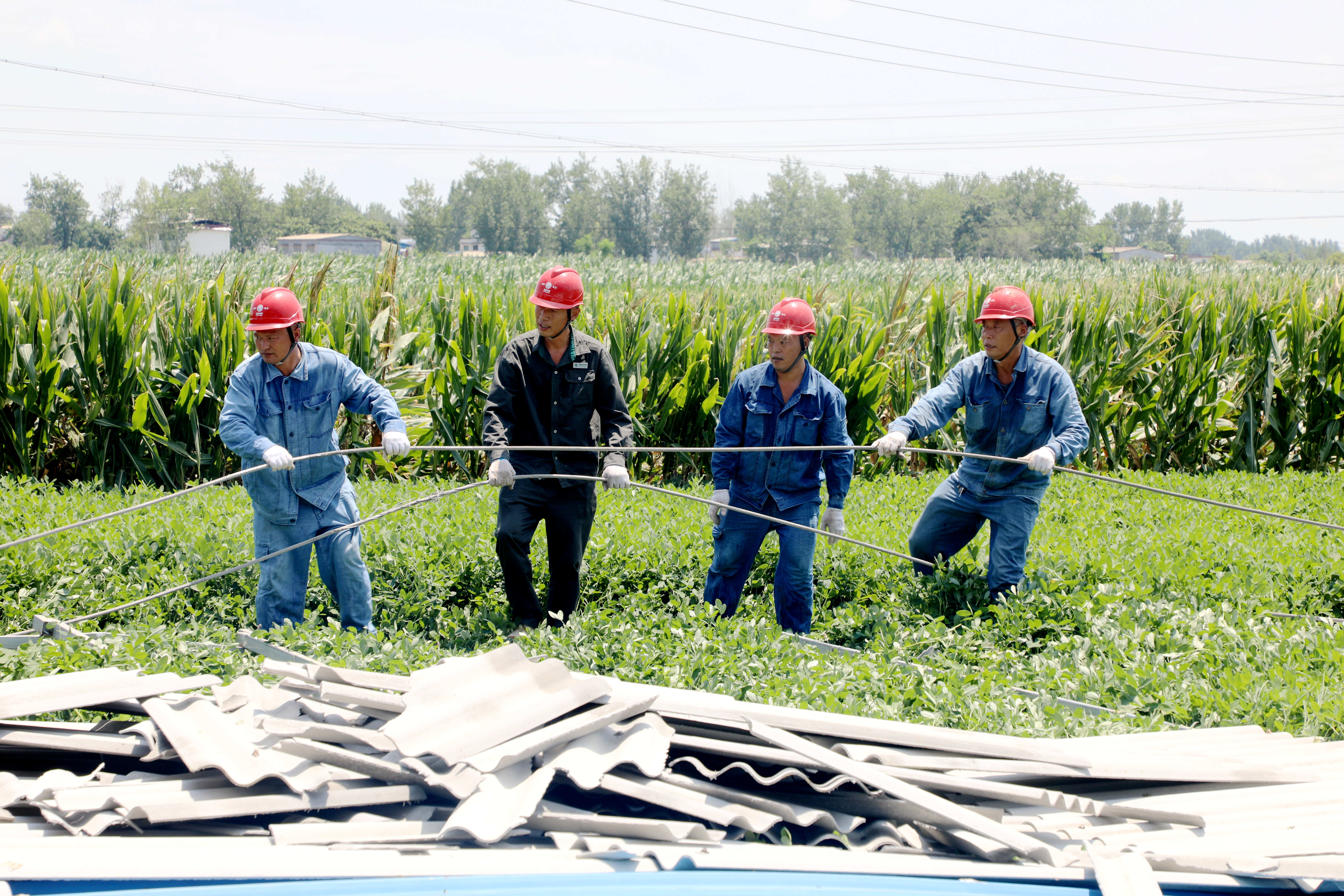 在35千伏址坊變電站10千伏灣張線出線倒桿緊急搶修現(xiàn)場(chǎng),焦裕祿共產(chǎn)黨員服務(wù)隊(duì)沖在最前線,戰(zhàn)高溫、斗酷暑,將原電桿位置遷移,在安全地點(diǎn)重新立桿接線,高效完成牽引、挖坑、立桿、填土、鞏固、緊線等搶修工序。經(jīng)過連續(xù)奮戰(zhàn),7月26日20時(shí)06分因?yàn)?zāi)停電線路全面恢復(fù)供電。③9
