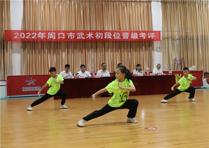 8月22日上午,由周口市武術(shù)協(xié)會主辦的中國武術(shù)初段位晉級考試在市體育中心開考,來自各縣(市、區(qū))武術(shù)協(xié)會、武校、武館、武術(shù)俱樂部的44支代表隊843人參加考試。此前,因新冠肺炎疫情影響,周口武術(shù)段位制暫停了三年。