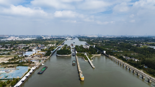 9月27日上午,“豫貨出海、周向世界”采訪組B組來到位于揚州市長江北岸的施橋船閘。古鎮(zhèn)施橋,長江與大運河在這里交匯,施橋船閘就位于這個交匯點上。