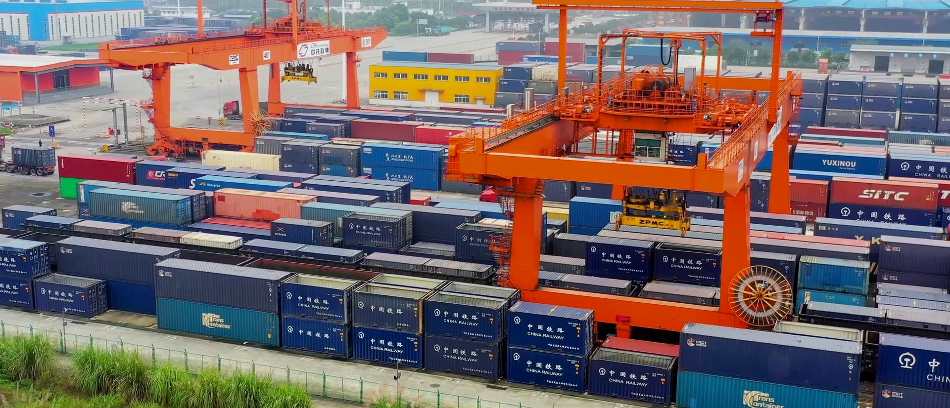 集裝箱在太倉港內(nèi)等待轉(zhuǎn)運(yùn)