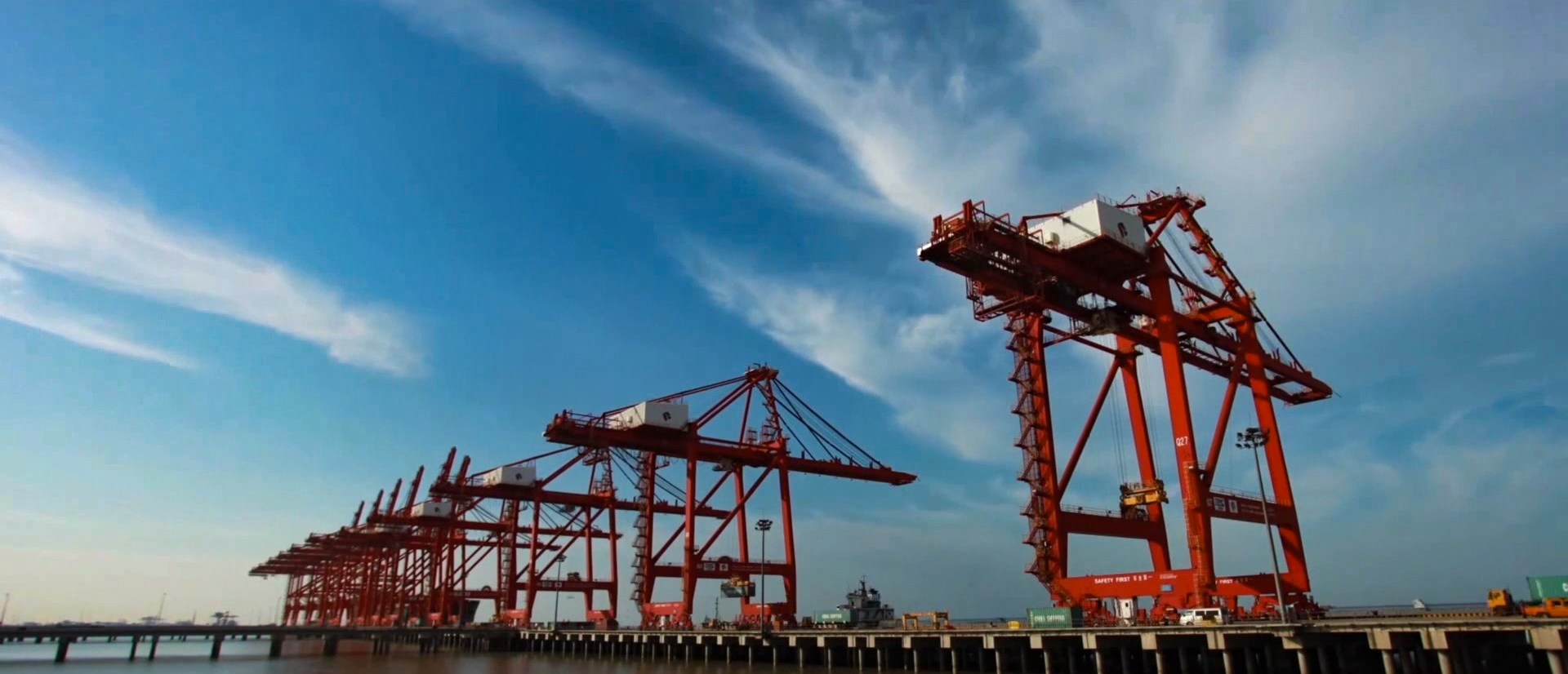 高高聳立的太倉港碼頭起重機(jī)