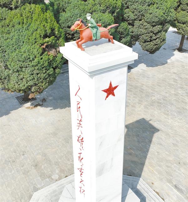 沈丘縣烈士陵園內,以朱彬烈士為原型的解放軍策馬揚鞭雕像 王亞輝 攝