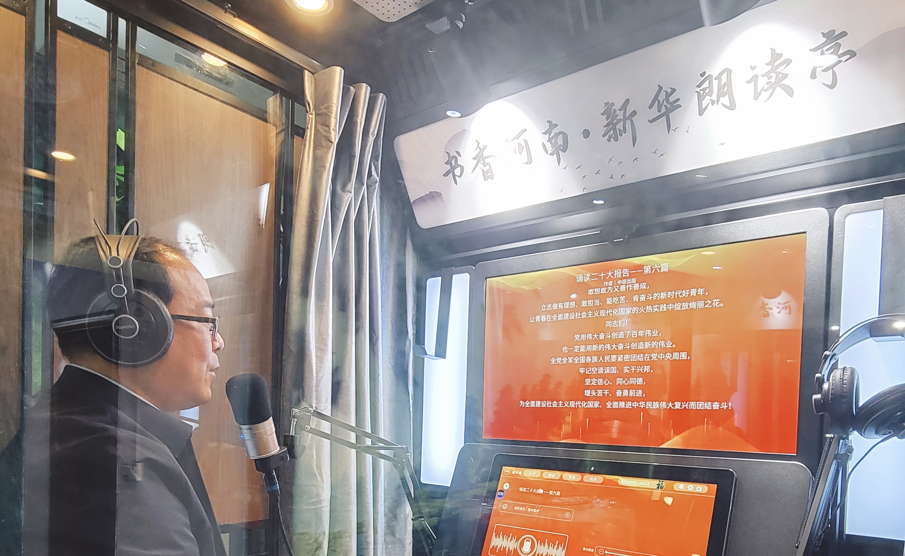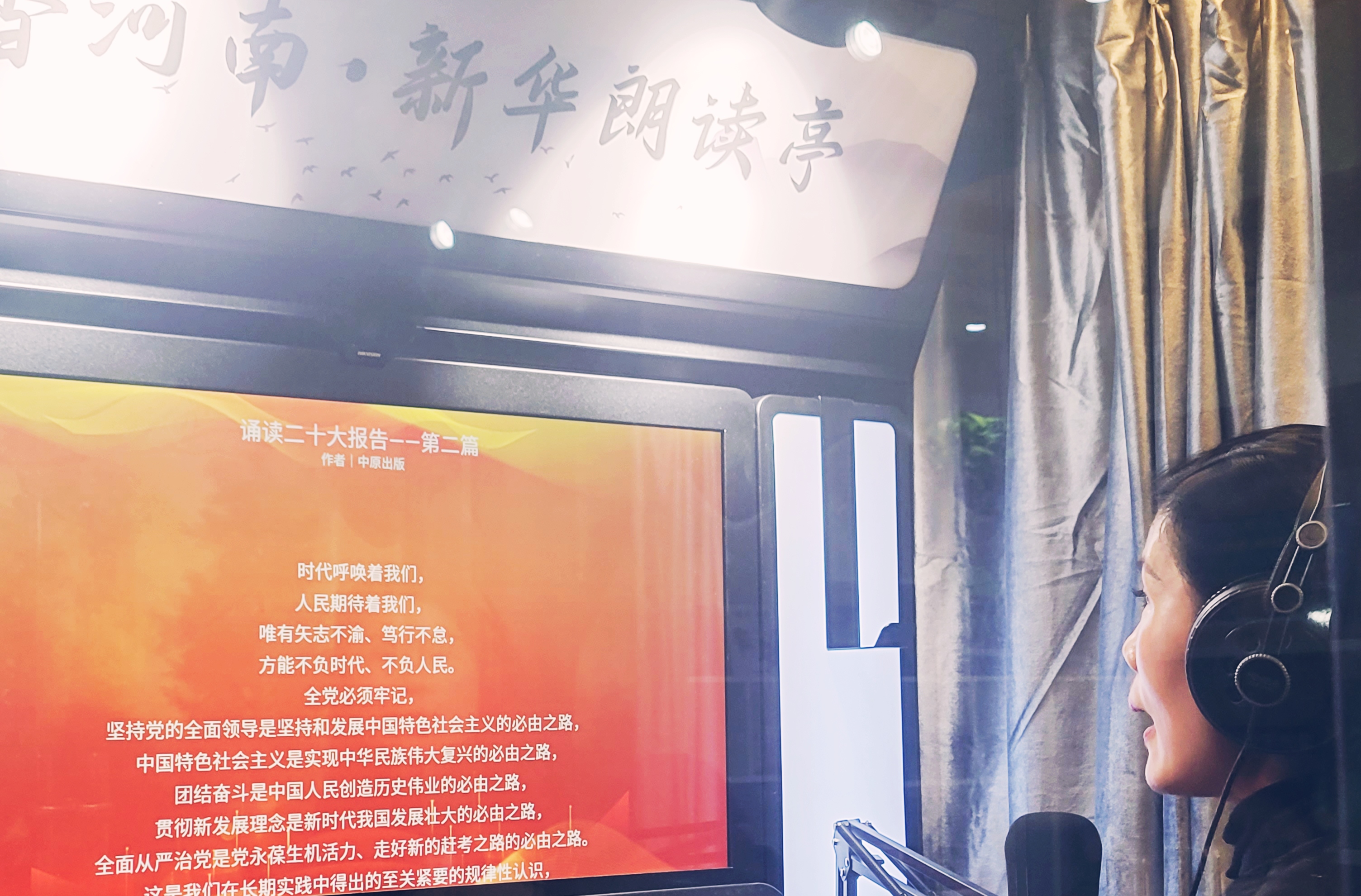 “堅(jiān)持黨的全面領(lǐng)導(dǎo)是堅(jiān)持和發(fā)展中國特色社會(huì)主義的必由之路……”11月3日,在位于項(xiàng)城市商城路與西大街交叉口的新華書店誦讀亭內(nèi),誦讀愛好者年秋燕正在選讀黨的二十大報(bào)告原文,其深情且鏗鏘有力的誦讀聲令人如癡如醉。