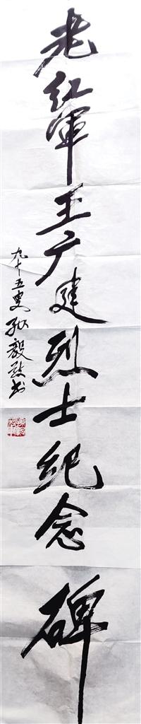 1999年,孫毅將軍95歲時(shí)為王廣建烈士紀(jì)念碑題寫(xiě)的碑文。