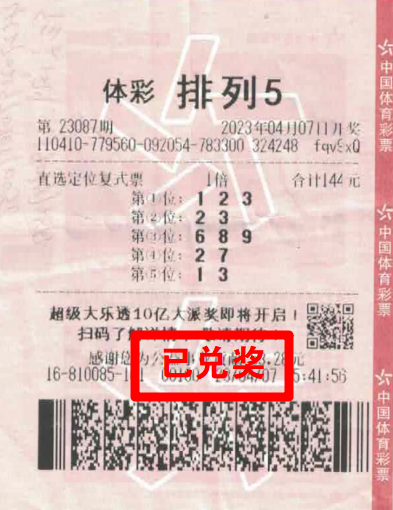 中獎當天,購彩者和往常一樣來到店里,對著店內(nèi)的歷史開獎號碼研究了一會兒,果斷選擇了定位復(fù)式進行投注。據(jù)悉,中獎?wù)邚埾壬ɑ┒嗄陙眇B(yǎng)成購買體育彩票小盤玩法排列型游戲的習慣,積累了豐富的購彩經(jīng)驗,對該玩法有自己獨到的分析方法和見解,善于利用定位復(fù)式進行購買,購彩多年,體育彩票排列型玩法給他帶來了多次中獎驚喜和美好的購彩體驗。23087期,在經(jīng)過自己的仔細分析和判斷后,張先生第一位選定123,第二位選定23,第三位選定689,第四位選定27,第五位選定13,組合成為一張144元的排列5定位復(fù)式票,巧妙運用自己獨特的選號技巧,幸運命中當期排列5一等獎。