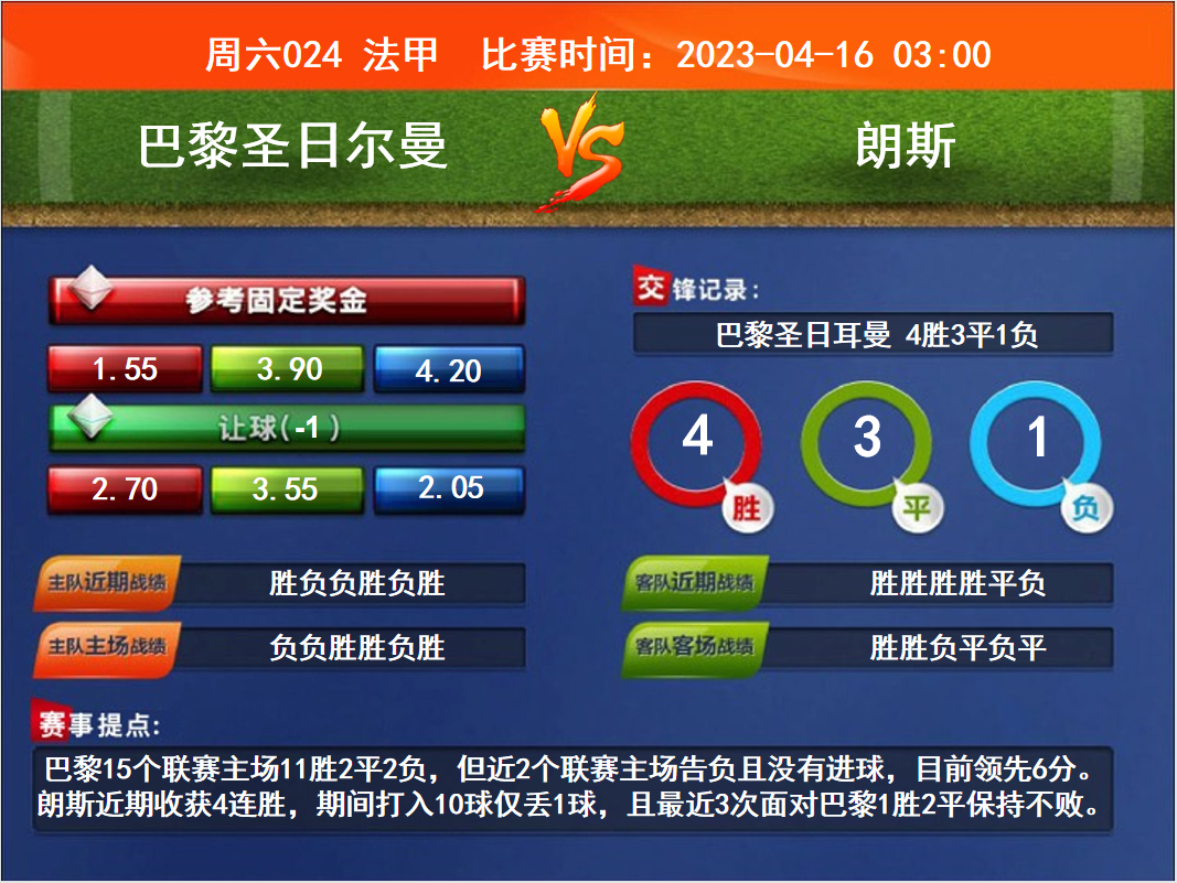 周六024 法甲 巴黎圣日爾曼VS朗斯