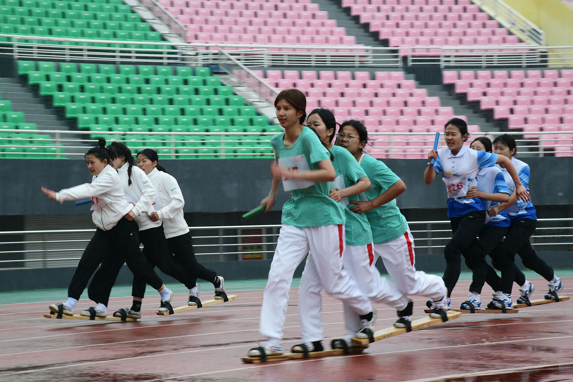4月23日上午,河南省第九屆少數(shù)民族傳統(tǒng)體育運(yùn)動會開賽。圖為在市體育中心進(jìn)行的板鞋競速和陀螺比賽。記者 梁照曾 攝