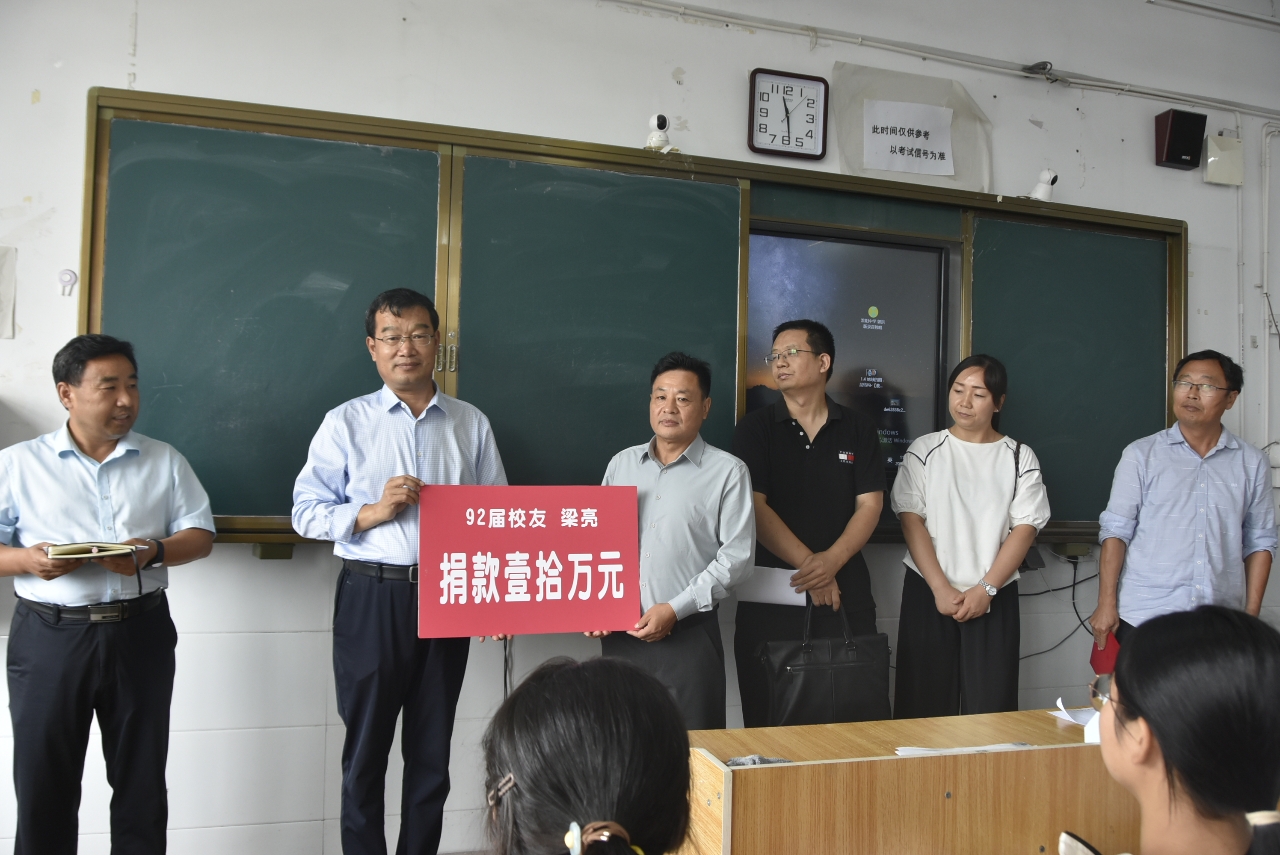 梁亮在發(fā)言中回憶了自己在母校求學(xué)時的點(diǎn)點(diǎn)滴滴,他感恩母校老師當(dāng)年的辛勤培養(yǎng),解釋了捐贈的初衷,并莊嚴(yán)承諾:只要自己的企業(yè)不倒閉,就會把這項公益事業(yè)一直做下去。他希望“大梁班”全體同學(xué)聽老師的話,做規(guī)范的事。不怕苦,不怕累,找對學(xué)習(xí)方法,合理分配時間,想法設(shè)法提高學(xué)習(xí)效率,抵制一切不良誘惑,一心用在學(xué)習(xí)上。他祝愿全體同學(xué)都能考入自己理想的大學(xué),一定會實現(xiàn)自己的夢想!