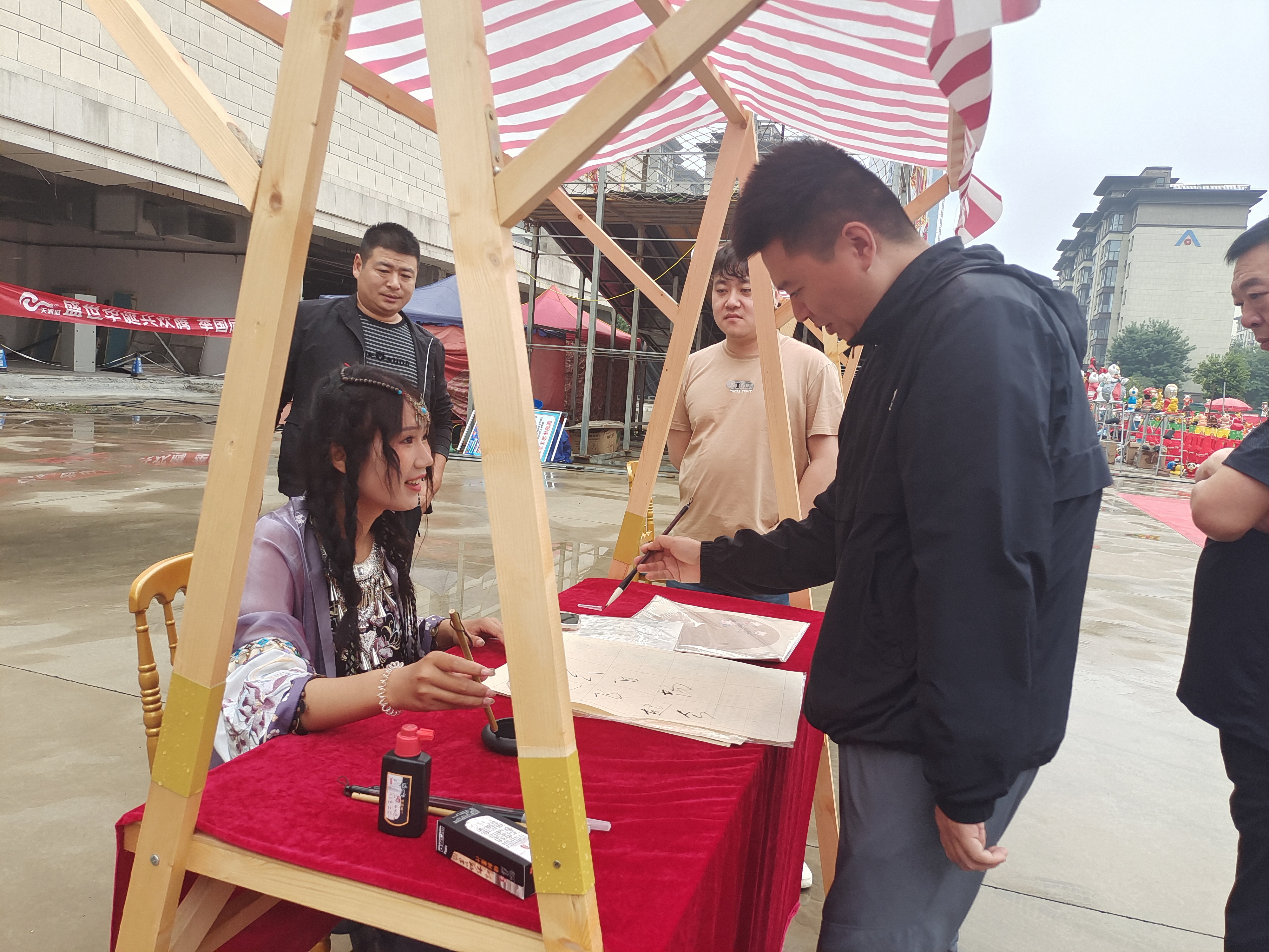 伴隨著開場舞《盛世歡歌》,“潮流雙節(jié)·中秋游園會暨國慶嘉年華”活動啟動儀式正式拉開帷幕。泥泥狗、剪紙、書法、繪制團扇……現(xiàn)場工作人員有的身著少數(shù)民族服裝,有的身著漢服,用親手制作的方式展示著傳統(tǒng)非物質(zhì)文化遺產(chǎn)獨有的韻味,吸引著來往的大人小孩駐足。有的甚至親自參與制作,捏泥泥狗、寫毛筆字、畫傳統(tǒng)團扇……現(xiàn)場歡笑不斷,大家在親自動手的過程中充分感受著中國傳統(tǒng)節(jié)日的豐富文化內(nèi)涵。