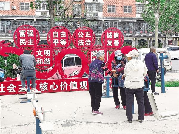 4月16日,幾名老年人在中心城區(qū)七一路東段康灣社區(qū)街頭游園內(nèi)鍛煉身體。他們?nèi)宄扇?,其?lè)融融。