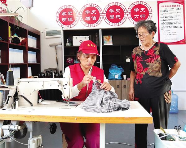 “家里的舊衣服千萬(wàn)別扔,我給大家修修還能穿。雖然現(xiàn)在咱們的日子越來(lái)越好,但也應(yīng)該注意節(jié)省……”8月3日,在中心城區(qū)文明路道德書(shū)屋,志愿者趙秋霞一邊忙著為市民縫補(bǔ)衣物,一邊和市民聊天。