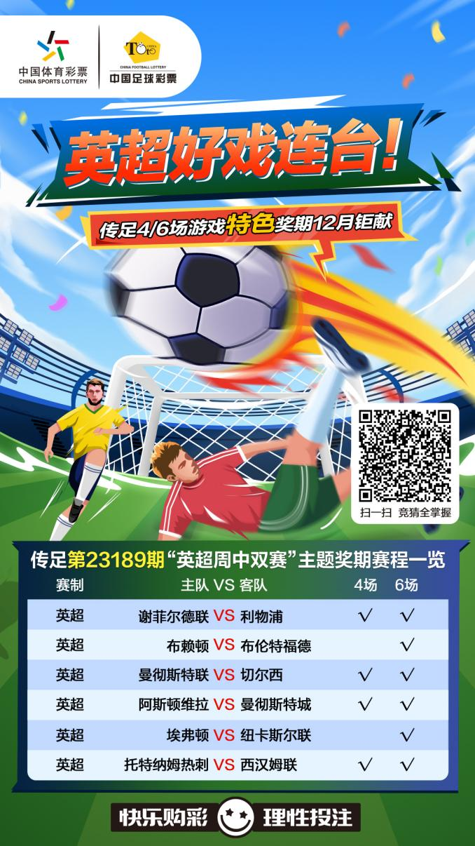 本周中歐洲主流足球賽事偃旗息鼓,唯有第15輪英超聯(lián)賽馬不停蹄地開(kāi)快車(chē),一周雙賽將考驗(yàn)各隊(duì)連續(xù)征戰(zhàn)的能力,板凳深度和輪換幅度將極大地影響英超未來(lái)的形勢(shì)和發(fā)展。傳足4/6場(chǎng)游戲第23189期競(jìng)猜對(duì)象全部是英超周中雙賽,分別是謝菲爾德聯(lián)VS利物浦、布賴(lài)頓VS布倫特福德、曼聯(lián)VS切爾西、阿斯頓維拉VS曼城、埃弗頓VS紐卡斯?fàn)柭?lián)以及熱刺VS西漢姆聯(lián)。