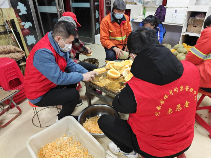 第二日早晨5點,周口體彩4名志愿者來到“東方愛心粥屋”開展志愿服務(wù),洗菜、切菜、炒菜、熬粥……大家有條不紊地準(zhǔn)備著早飯。“我們掃地起得很早,來到這吃碗熱粥,更有干勁了?!薄爸驹刚哒尜N心,熱粥熱菜的,感覺很幸福?!闭诔栽顼埖沫h(huán)衛(wèi)工人你一言我一語、贊聲一片。