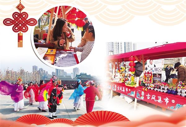 2月12日,關(guān)帝廟歷史街區(qū)的“古風(fēng)集市”上,人來人往、熙熙攘攘,布老虎、泥泥狗、剪紙、糖人等具有周口特色的非遺產(chǎn)品烘托出濃濃的年味,吸引大量游客前來欣賞、購買。