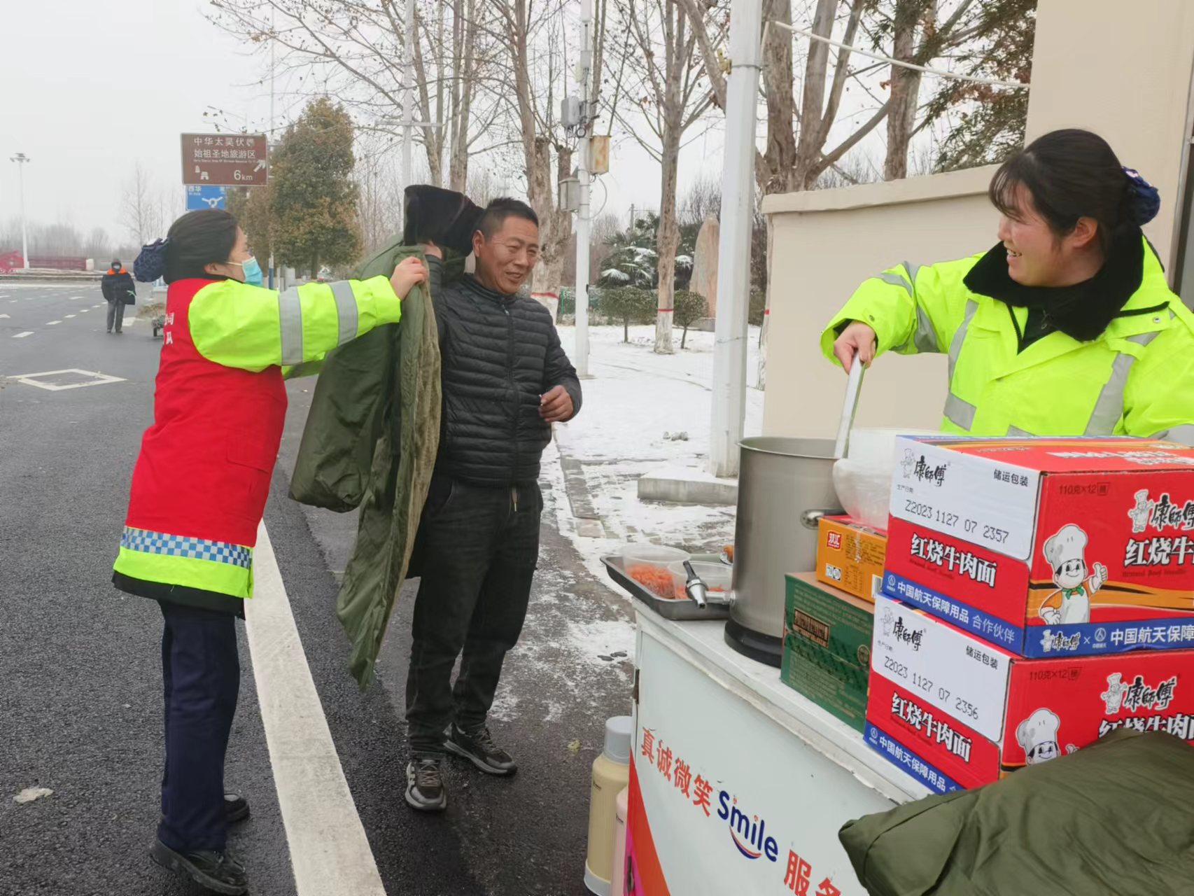 開(kāi)展“情滿旅途、暖心春運(yùn)”活動(dòng),實(shí)行全員駐站,黨員干部下沉一線、靠前指揮;組建黨員突擊隊(duì),設(shè)立黨員先鋒崗、志愿服務(wù)臺(tái),開(kāi)展志愿服務(wù),儲(chǔ)備棉大衣2000件、瓶裝水1000件、方便面1200箱、火腿腸500箱、熱水壺500個(gè)等應(yīng)急物資,為司乘提供熱水、維修工具、路況指引、充電器、救助司乘,開(kāi)辟生命綠色通道,巡邏車開(kāi)道與時(shí)間賽跑,緊急護(hù)送危重病人,打通生命救援通道,確保司乘人員“不凍著、不餓著、不滯留”。