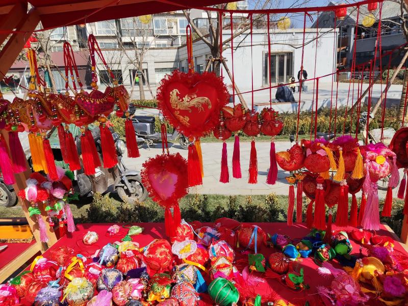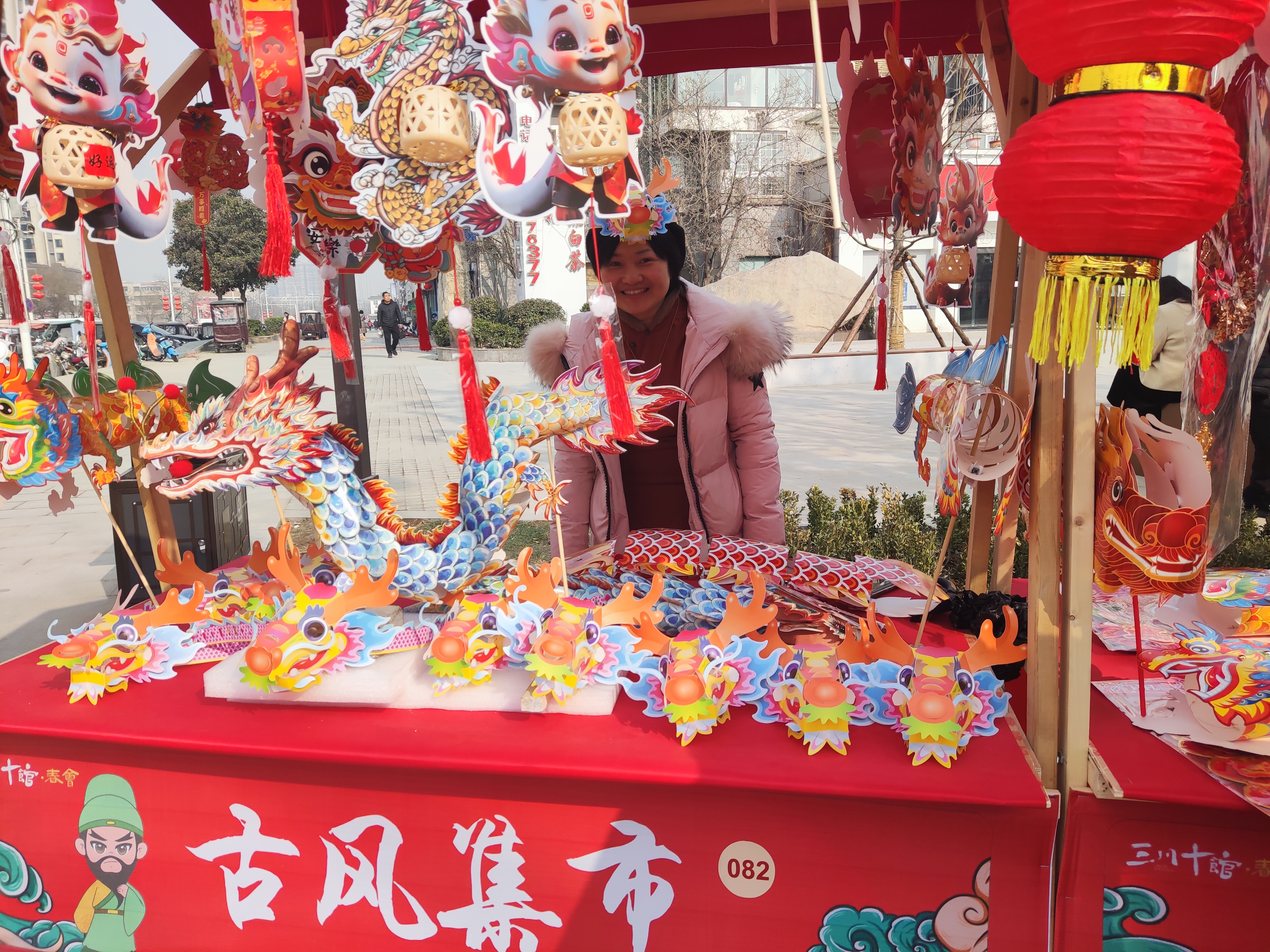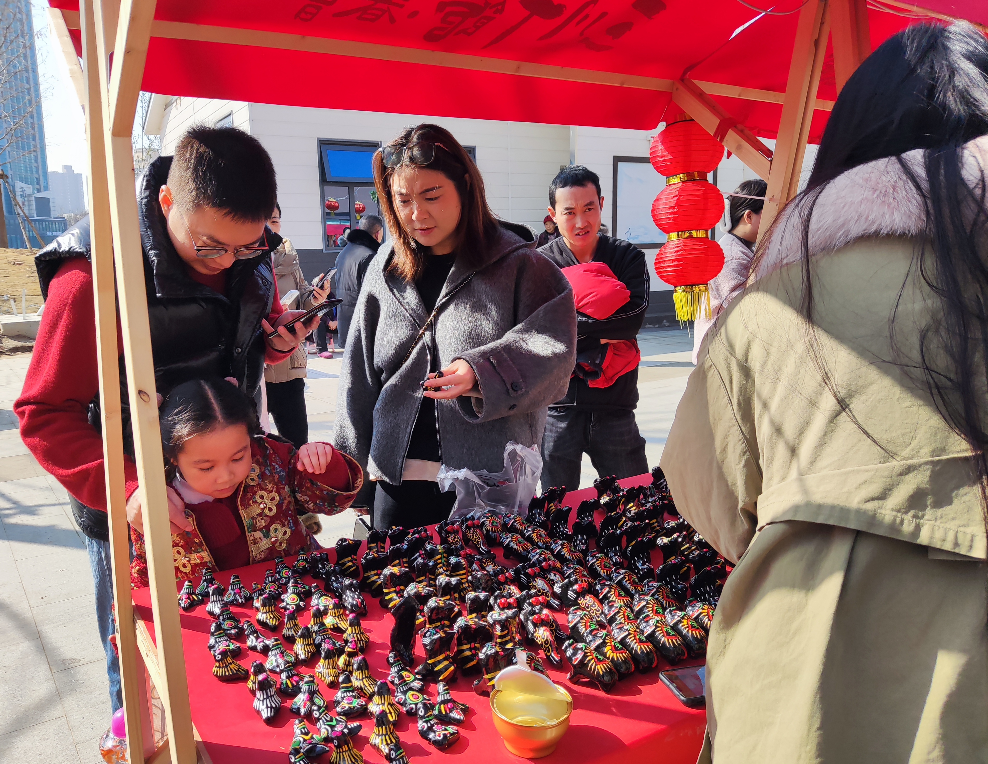 2月12日,“三川十館·春會”關(guān)帝廟歷史街區(qū)的“古風(fēng)集市”上,人來人往、熙熙攘攘。布老虎、泥泥狗、剪紙、棕編、草編、糖人等具有周口特色的非遺產(chǎn)品營造了濃濃的年味,吸引大量游客前來欣賞、購買。多姿多彩的非遺產(chǎn)品也讓龍年春節(jié)更加具有文化氣息。(記者 王吉城 攝)