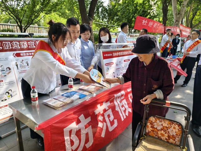活動(dòng)當(dāng)天,該行組織員工前往五一廣場(chǎng)開(kāi)展集中宣傳,通過(guò)設(shè)置宣傳咨詢臺(tái),懸掛橫幅,向群眾發(fā)放反假幣、愛(ài)護(hù)人民幣和打擊假幣犯罪宣傳折頁(yè),普及數(shù)字人民幣知識(shí),宣傳人民幣防偽知識(shí)和識(shí)別假幣騙局,傳遞“防范假幣,保護(hù)自我”理念。針對(duì)老年客戶風(fēng)險(xiǎn)意識(shí)和識(shí)假能力不足問(wèn)題,該行開(kāi)展“一對(duì)一,手把手”現(xiàn)場(chǎng)教授假幣“看、摸、聽(tīng)、測(cè)”等識(shí)別方法,切實(shí)守牢老年客戶的“錢袋子”。