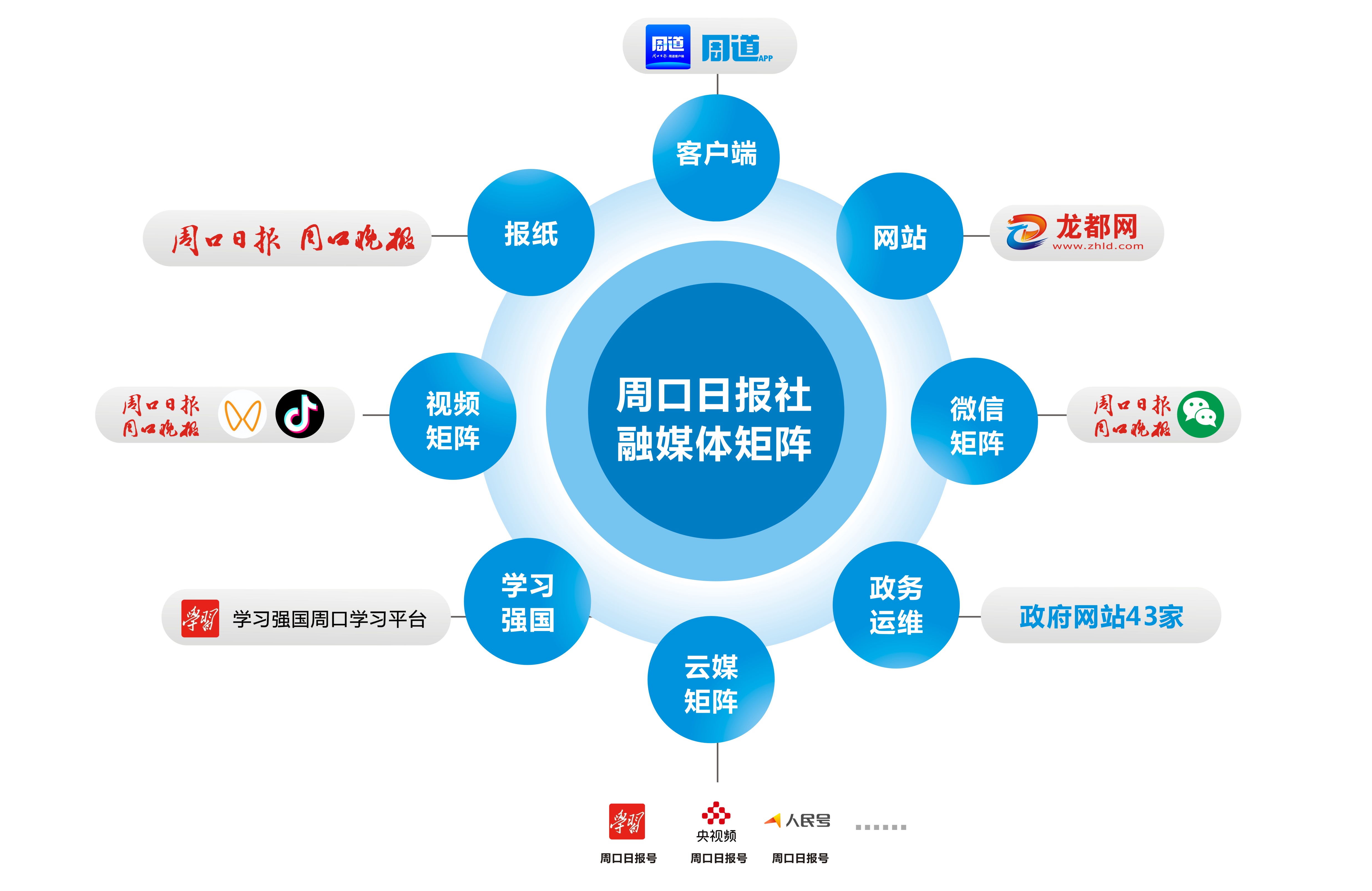 周口日?qǐng)?bào)社始終堅(jiān)持“移動(dòng)優(yōu)先 內(nèi)容為王 導(dǎo)向?yàn)榛?創(chuàng)新為要”的發(fā)展方向,從體制機(jī)制、隊(duì)伍建設(shè)、采編創(chuàng)新、服務(wù)優(yōu)先、經(jīng)營轉(zhuǎn)型等多方面持續(xù)發(fā)力,不斷深化媒體融合發(fā)展。已形成涵蓋《周口日?qǐng)?bào)》,《周口晚報(bào)》,龍都網(wǎng),周道客戶端,官方微信號(hào)、微博號(hào)、視頻號(hào)、抖音號(hào),學(xué)習(xí)強(qiáng)國周口學(xué)習(xí)平臺(tái)、政務(wù)運(yùn)維等12大門類18個(gè)主體的立體傳播矩陣,托管運(yùn)維政府網(wǎng)站43家,用戶總數(shù)逾千萬。對(duì)外宣傳上,周口日?qǐng)?bào)社還在學(xué)習(xí)強(qiáng)國客戶端、人民日?qǐng)?bào)客戶端、央視頻客戶端等多個(gè)第三方平臺(tái)開設(shè)周口日?qǐng)?bào)號(hào),組成網(wǎng)絡(luò)云媒矩陣,形成了全方位、立體化、多角度展示周口形象的全媒體傳播新格局。