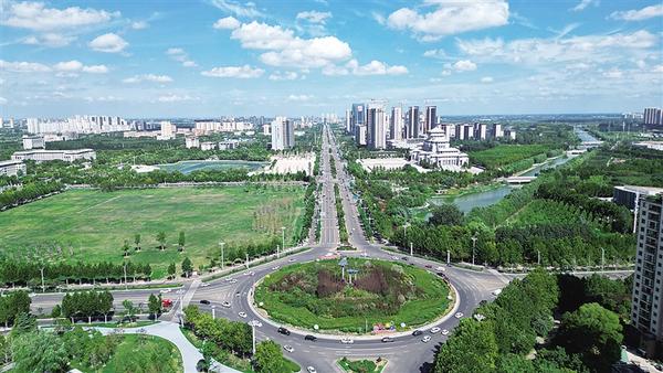 近年來,我市城市建設(shè)取得顯著成效。圖為藍天白云映襯下的周口市城鄉(xiāng)一體化示范區(qū)。 記者 梁照曾 攝