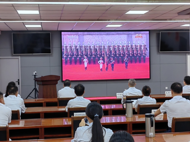 收看過程中,大家心情澎湃,感慨萬千。現(xiàn)場氣氛莊重而熱烈,大家全神貫注,聆聽習(xí)近平總書記重要講話,滿懷激動與自豪的觀看閱兵儀式的全過程。當(dāng)威武雄壯的三軍儀仗隊(duì)邁著鏗鏘有力的步伐率先通過天安門廣場時,當(dāng)一個個裝備方隊(duì)展示著彰顯國家實(shí)力的現(xiàn)代化尖端武器時,當(dāng)戰(zhàn)機(jī)梯隊(duì)以恢宏陣勢呼嘯掠過蒼穹時,大家內(nèi)心迸發(fā)出由衷的贊嘆,為祖國日益強(qiáng)盛而自豪。