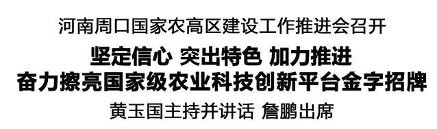 本報訊 (記者 王艷) 12月3日,市委書記黃玉國主持召開河南周口國家農(nóng)高區(qū)建設工作推進會,聽取工作匯報,對農(nóng)高區(qū)各項工作進行深入研究、安排部署,進一步統(tǒng)一思想、凝聚共識,推動農(nóng)高區(qū)建設取得新成效,奮力擦亮國家級農(nóng)業(yè)科技創(chuàng)新平臺金字招牌。市長詹鵬出席。