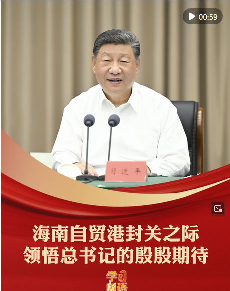 12月18日,海南自由貿(mào)易港正式啟動全島封關(guān)。建設(shè)海南自由貿(mào)易港,是習(xí)近平總書記親自謀劃、親自部署、親自推動的改革開放重大舉措。封關(guān)之際,讓我們領(lǐng)悟習(xí)近平總書記的殷殷期待,為把海南自由貿(mào)易港打造成為引領(lǐng)我國新時(shí)代對外開放的重要門戶加油。