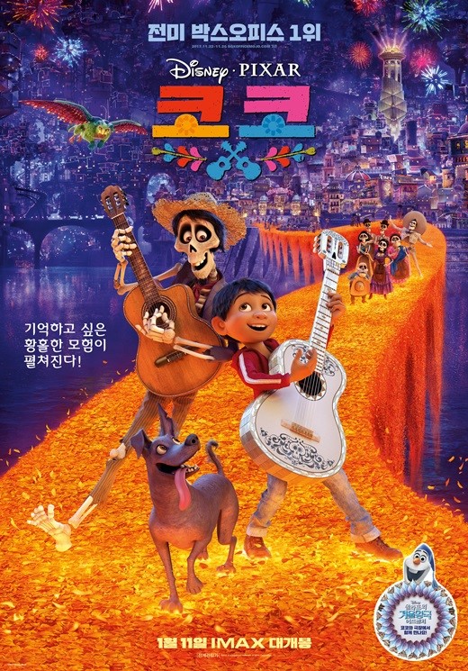 美國(guó)動(dòng)畫電影《尋夢(mèng)環(huán)游記》昨天在韓國(guó)上映,創(chuàng)下了超過10萬(wàn)人的首映觀影人數(shù)。……[詳細(xì)]
