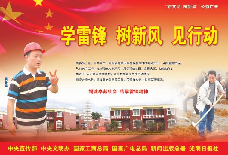 為貫徹落實(shí)黨的十八大精神,充分發(fā)揮公益廣告在展示文明新風(fēng)、弘揚(yáng)社會(huì)正氣的重要作用,積極培育社會(huì)主義核心價(jià)值觀,由市委宣傳部、市文明辦主辦,周口移動(dòng)公司、中華龍都網(wǎng)、周口新網(wǎng)協(xié)辦,在全市征集評選"講文明樹新風(fēng)"公益廣告。