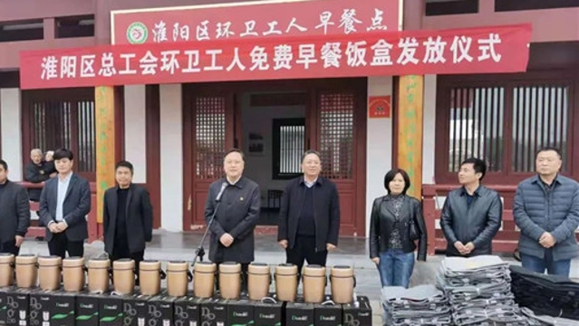 [淮陽]總工會免費為環(huán)衛(wèi)工人發(fā)放保溫飯盒