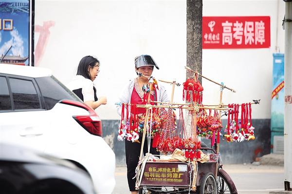 6月5日,一名婦女正在淮陽(yáng)城區(qū)街頭銷售香囊。端午節(jié)將至,香囊成了街頭巷尾的一道亮麗風(fēng)景。香囊里填充有艾葉、丁香、白芷等中草藥,散發(fā)出淡淡的清香,不僅能驅(qū)蚊蟲(chóng)、避瘟疫,還寓意著祈福納祥、健康平安。 ...[詳細(xì)]