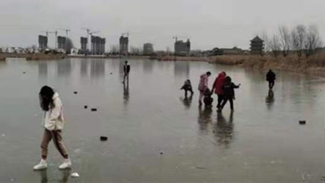 [淮陽]市民體驗(yàn)新鮮冰上走 龍湖執(zhí)法隊(duì)員及時(shí)勸離