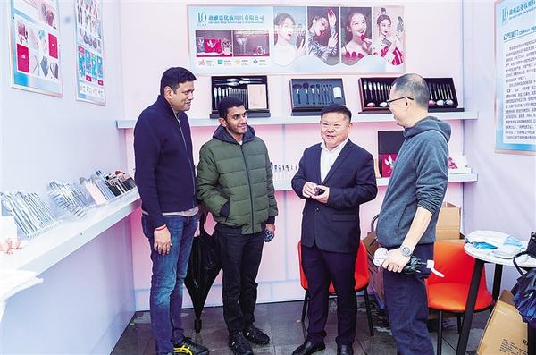11月16日,鹿邑縣化妝刷企業(yè)的工作人員向兩名外國(guó)客戶(hù)(左一、左二)介紹產(chǎn)品。當(dāng)天,鹿邑縣首屆美妝、化妝刷展銷(xiāo)會(huì)在弘道苑廣場(chǎng)開(kāi)幕。本屆展銷(xiāo)會(huì)為期3天,吸引100多家企業(yè)參展。 ...[詳細(xì)]